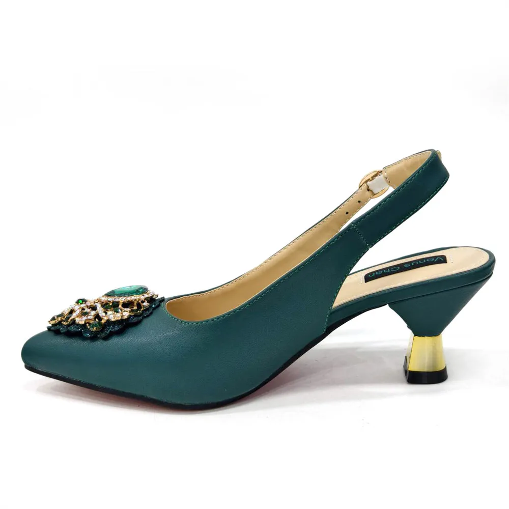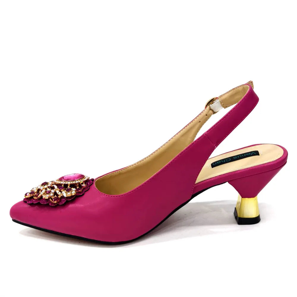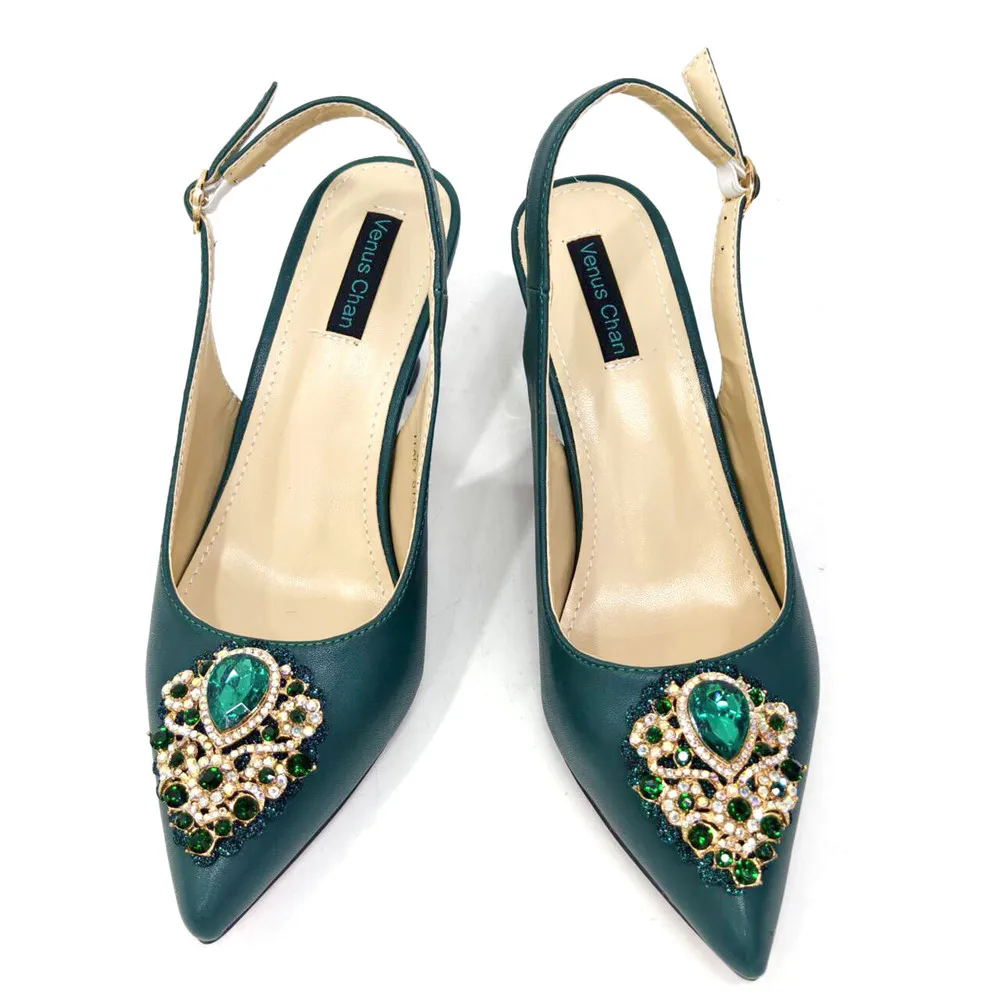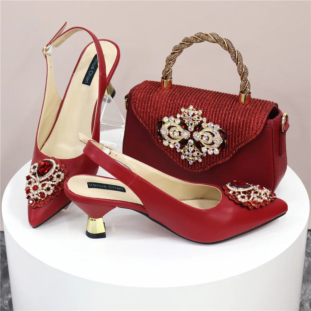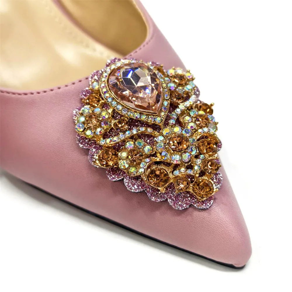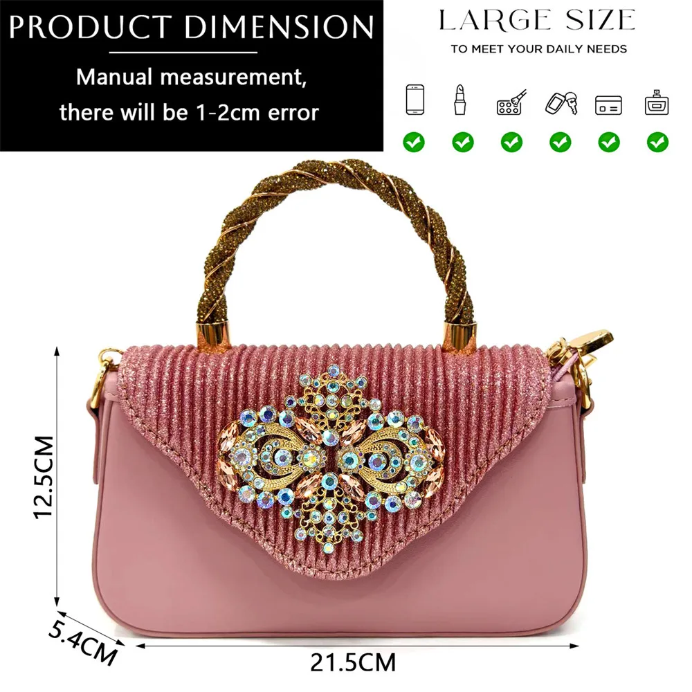 Italian 2024 Fashion Design Diamond Chain Full Diamond Bag And Pointed High Heels Noble And Generous Decoration Full Diamond