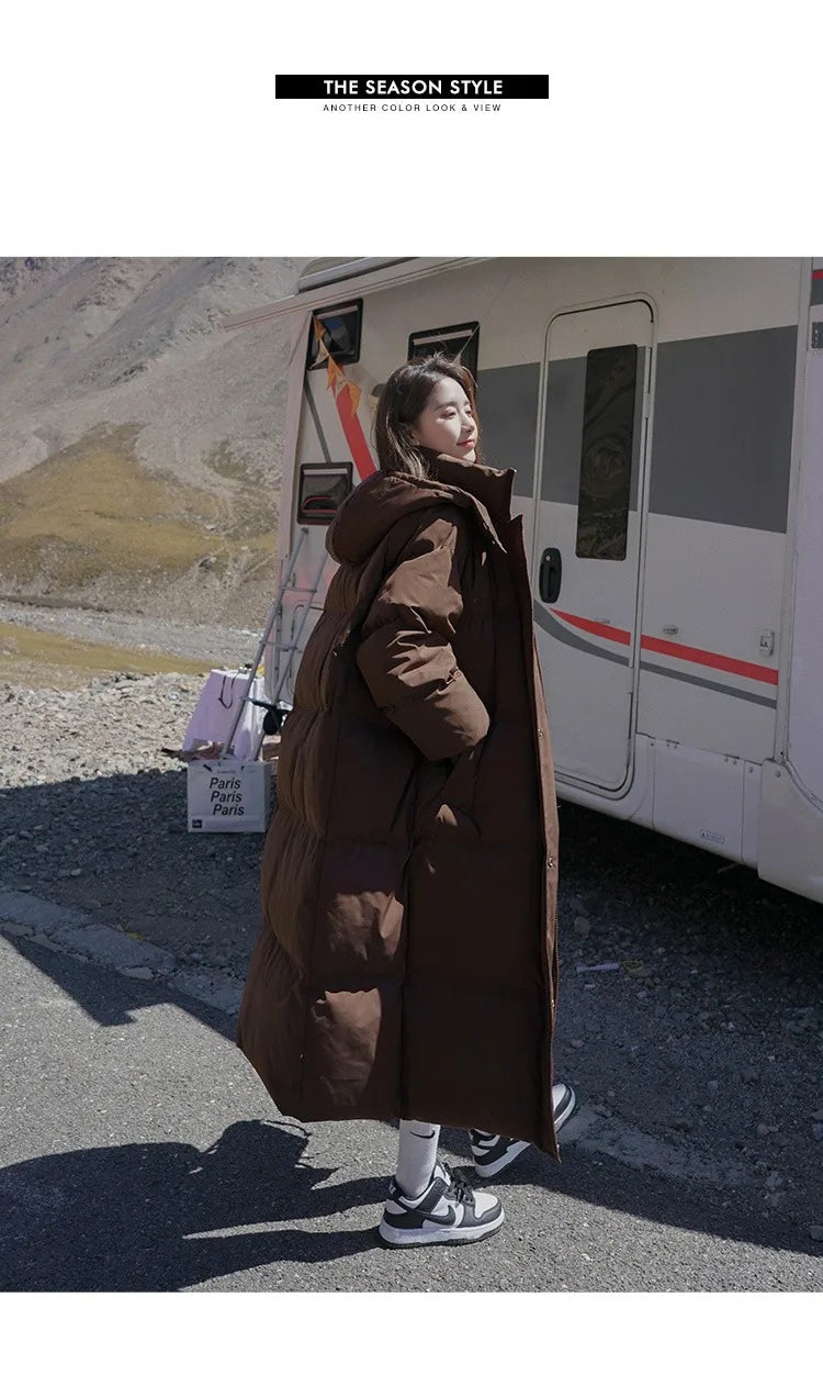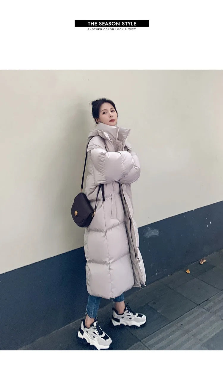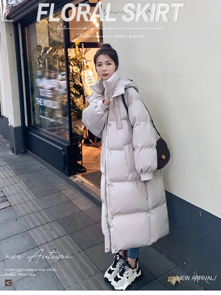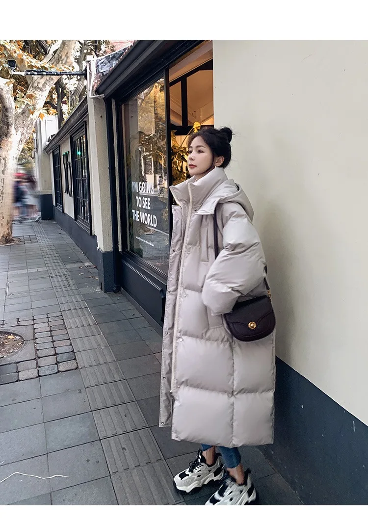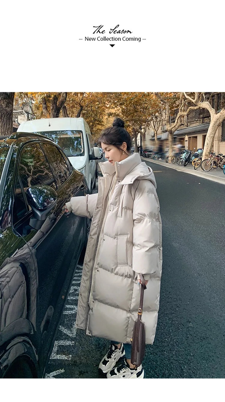 ITOOLIN Women Casual Down Coat Thicken Cotton Warm Hooded Long Coat Long Sleeve Parkas Button Pocket Autumn Winter Office Coat