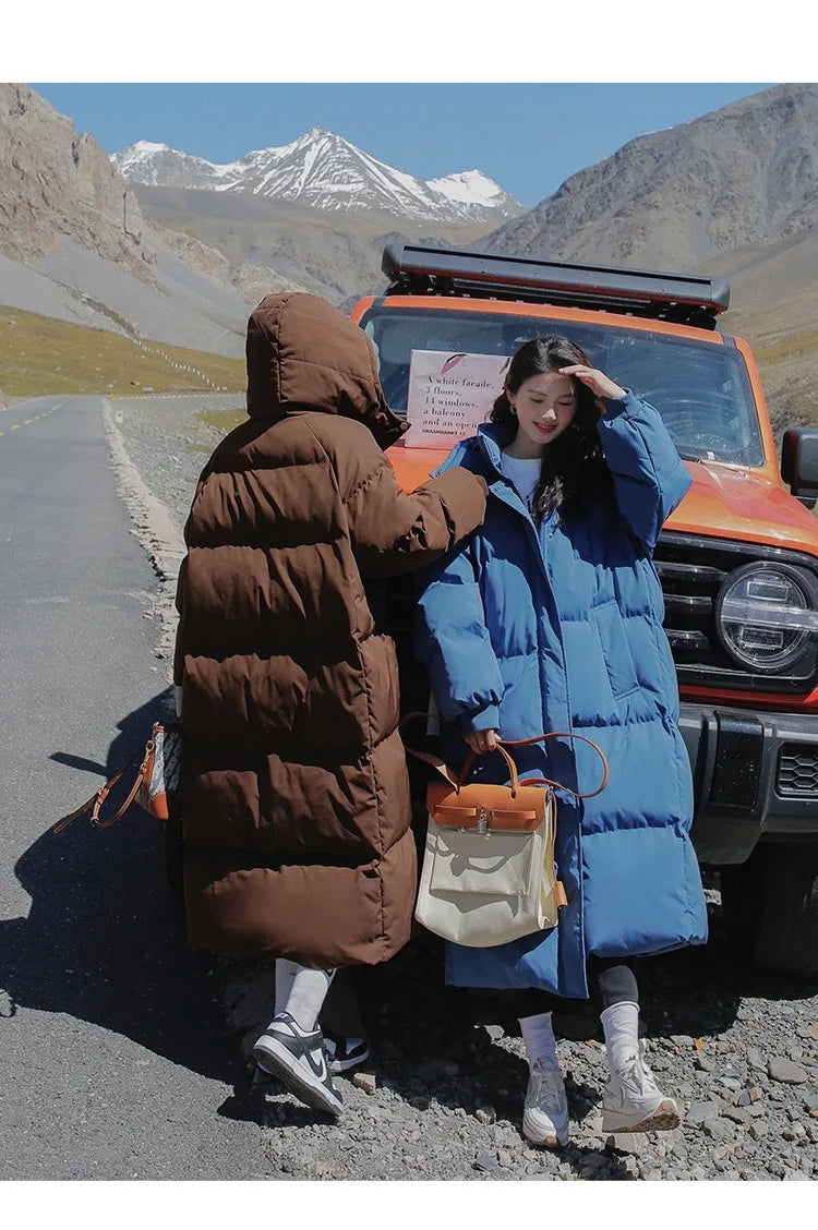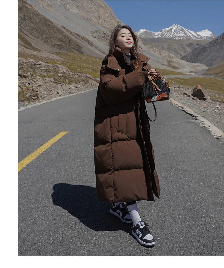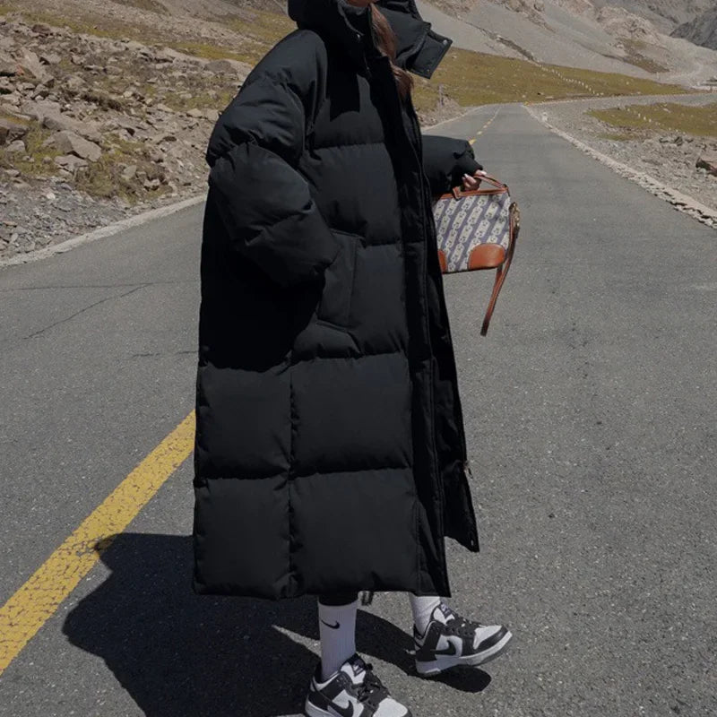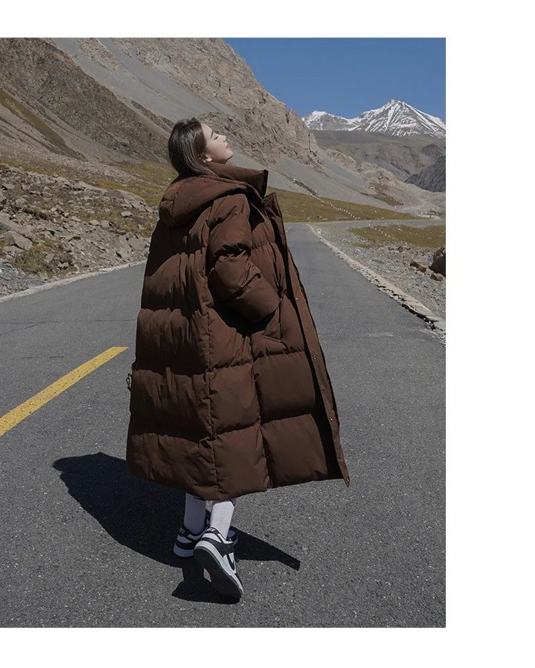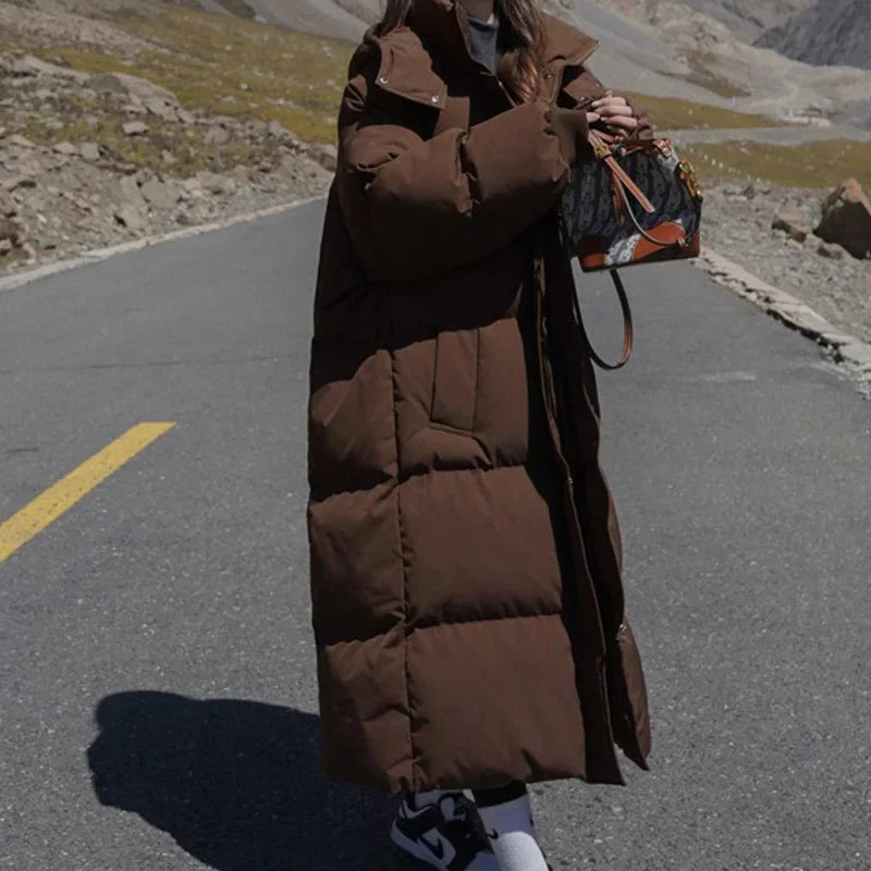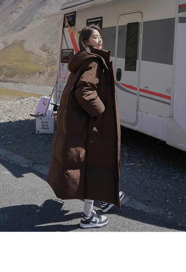 ITOOLIN Women Casual Down Coat Thicken Cotton Warm Hooded Long Coat Long Sleeve Parkas Button Pocket Autumn Winter Office Coat