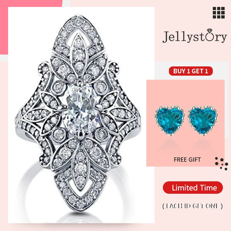 Jellystory Luxury Rings 925 Silver Jewellery for Women with Geometric Shaped Zircon Gemstones Ring Wedding Party Gifts size 6-10
