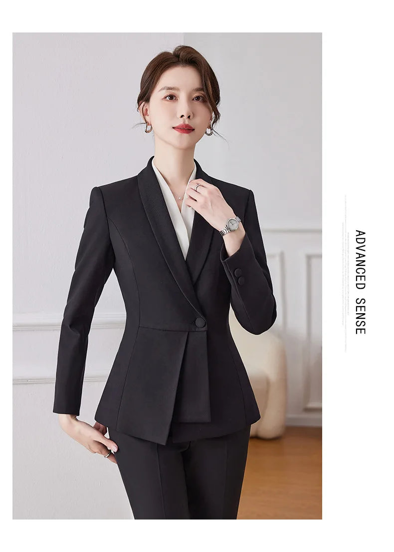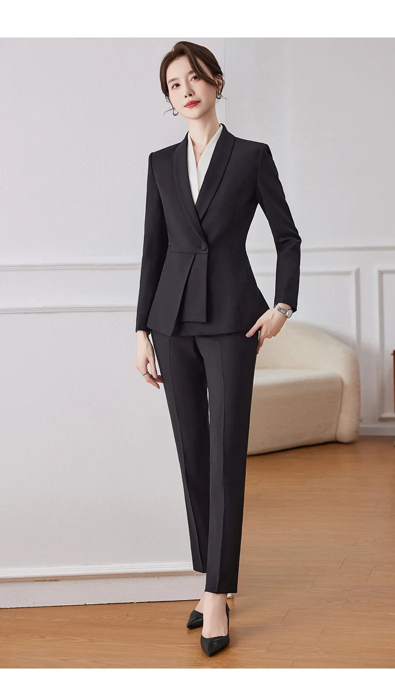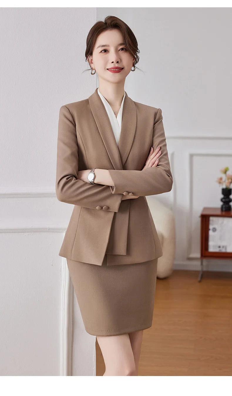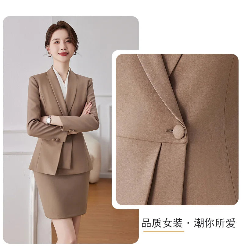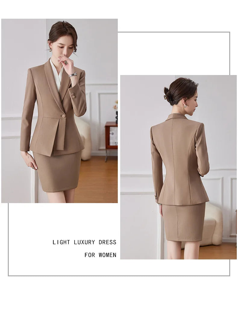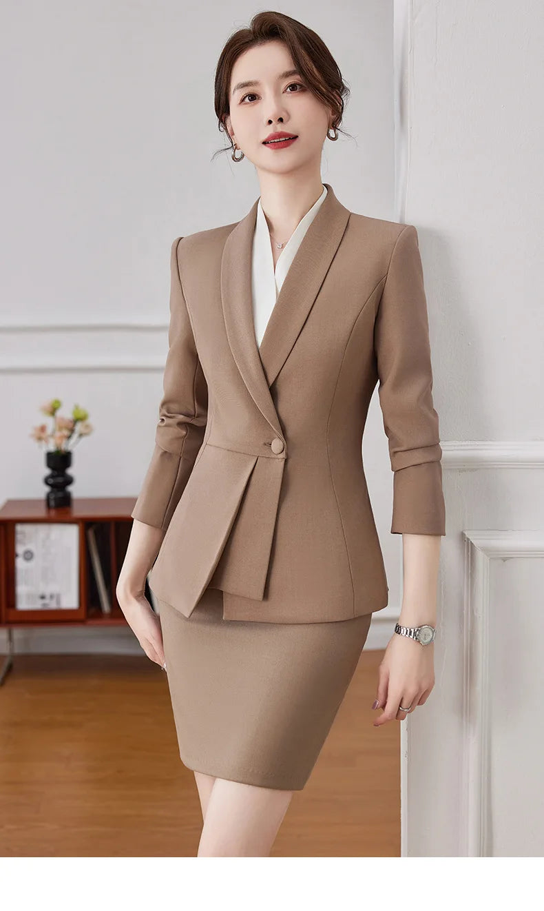 Equipped with a single-button closure, this skirt suit offers easy wear and removal, perfect for busy professionals.