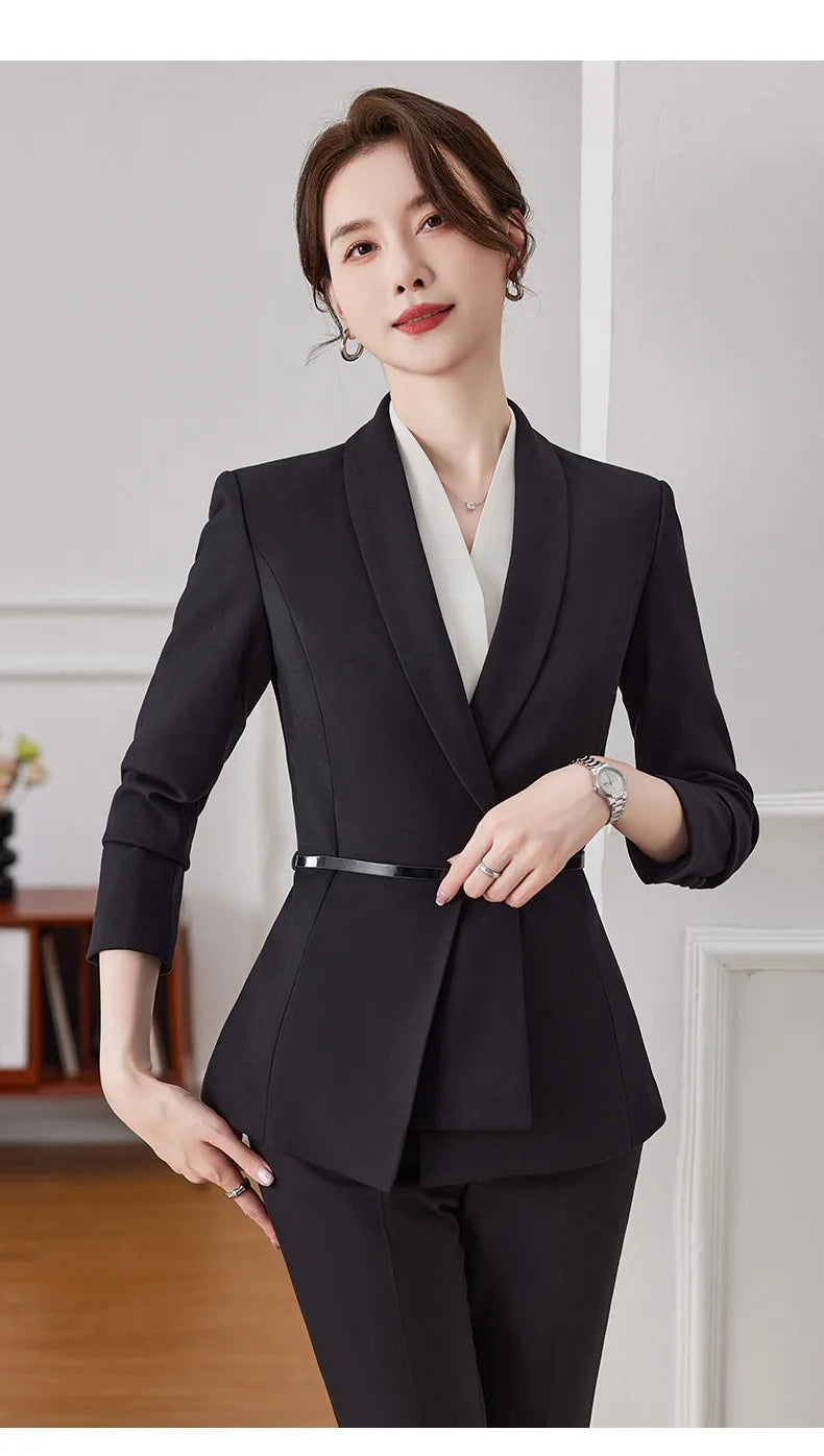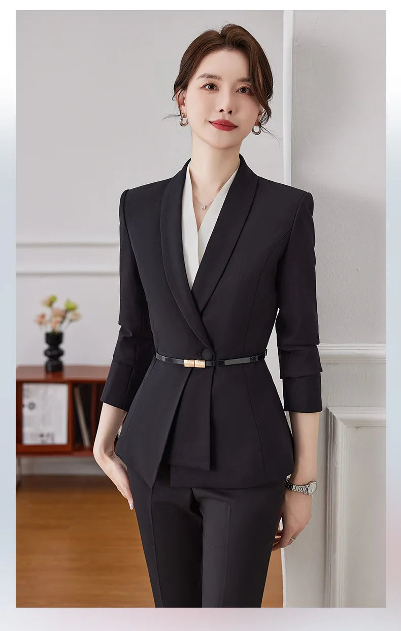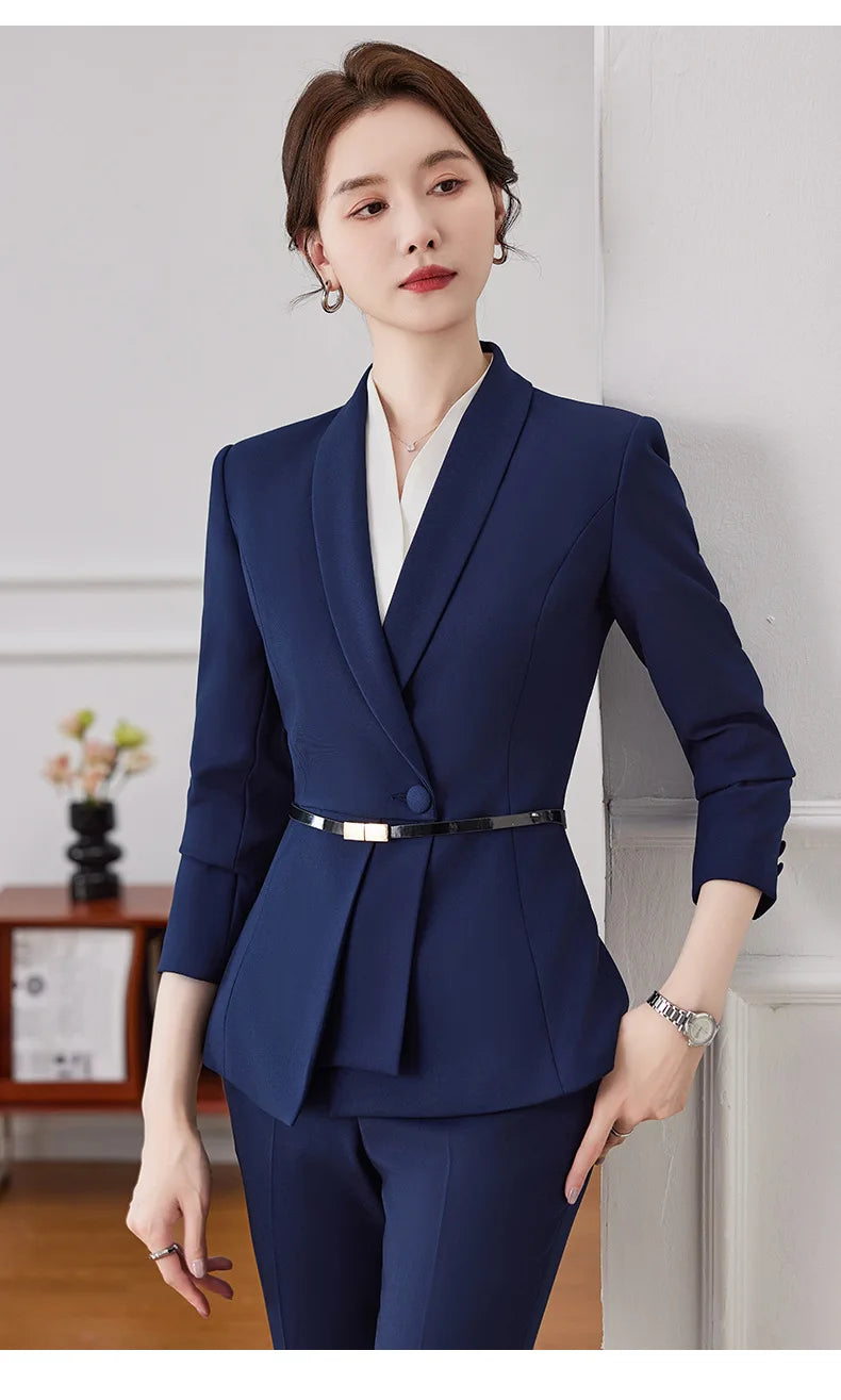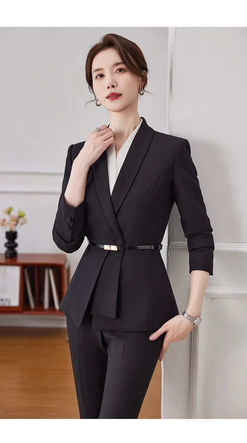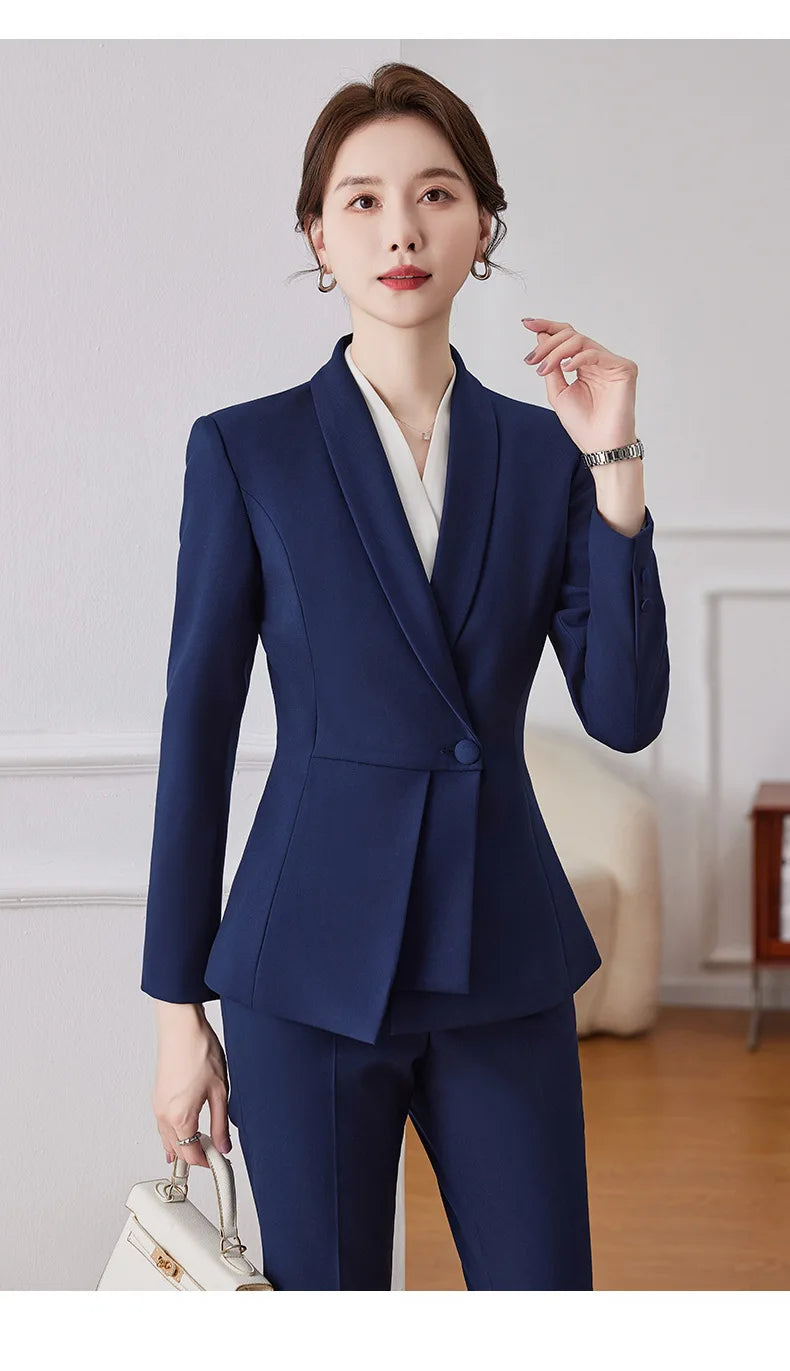 Equipped with a single-button closure, this skirt suit offers easy wear and removal, perfect for busy professionals.