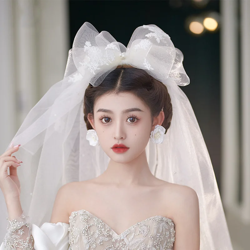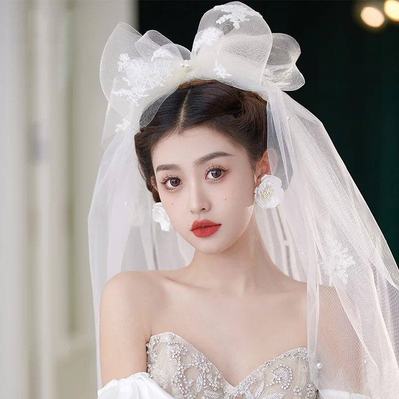 Korean Style Wedding Veil Large Bowknot Bride Veils Wedding Hair Accessories Woman's accessories