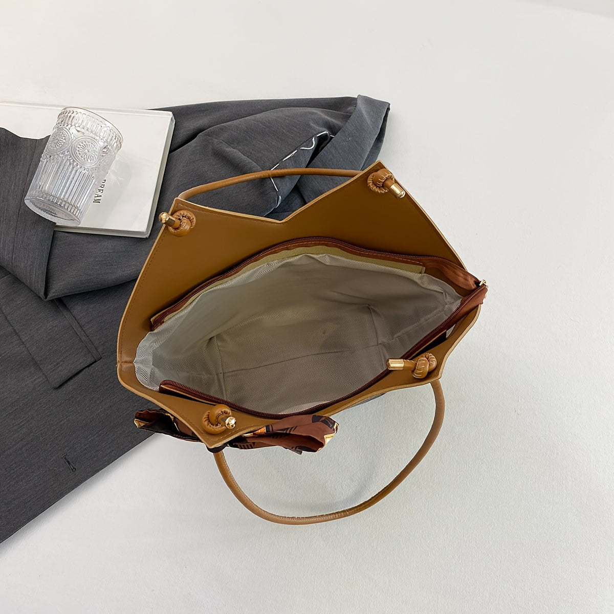 LABOONOO Women'S Extra Large Tote Bag - Stylish Shoulder Handbag with Ribbon Bow, Black & Brown Pattern, Zipper Closure, Perfect for Everyday Use, Ladies Handbags