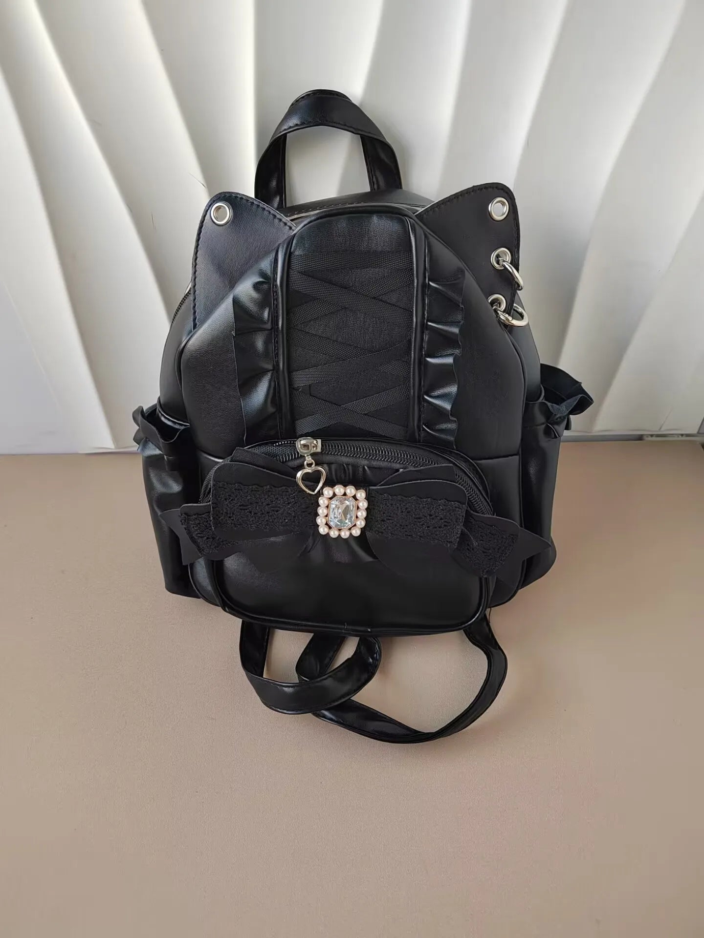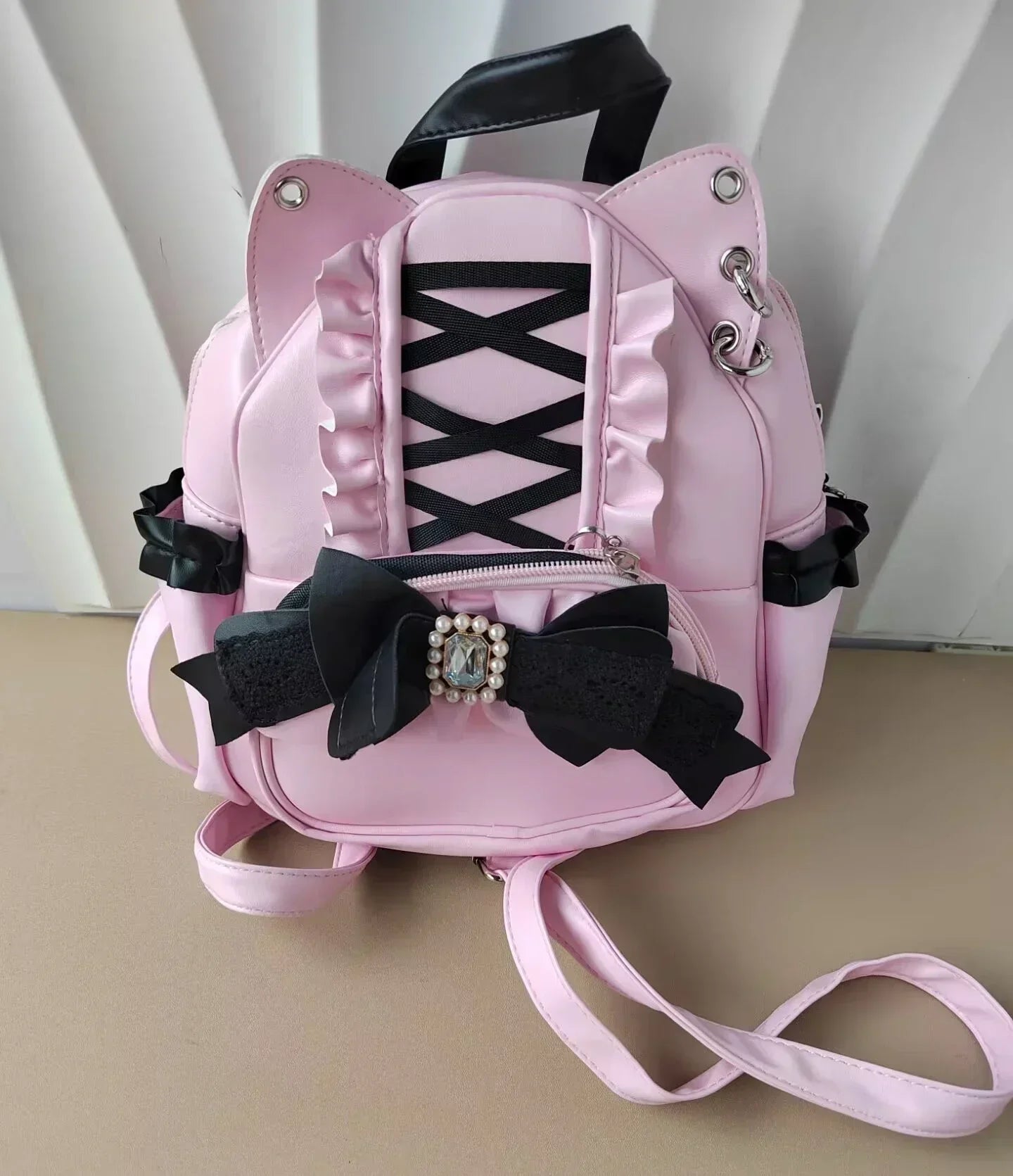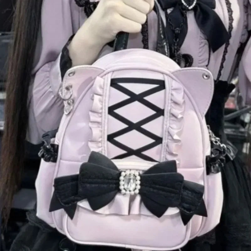 Lace Cat's Ear School Bag Japan Lolita Ita Mochila Cute Large Capacity Mochilas Mujer 2025 New Bow Women Bags Student Backpack