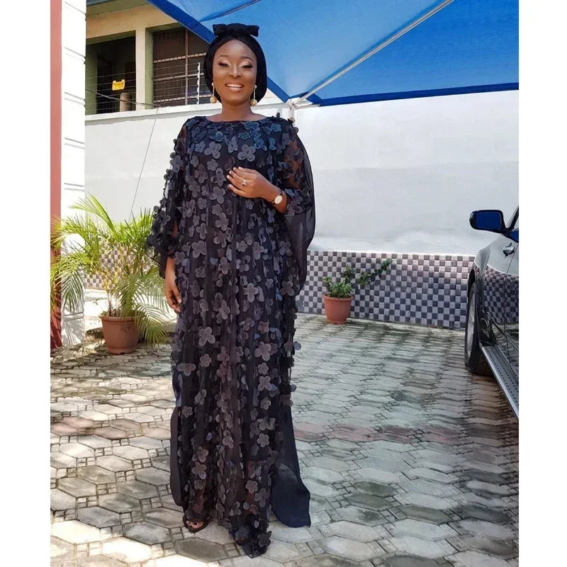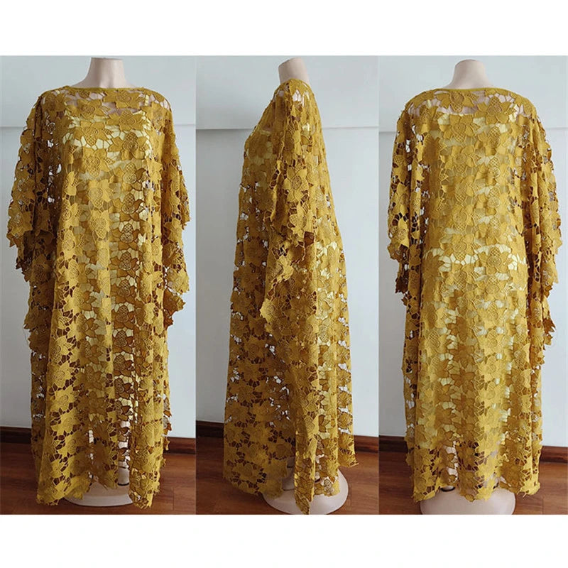 Lace Hollow Africa Dress African Dresses for Women African Clothes 2025 Dashiki Taditional Boubou Arabic Robe Femme Musulmane