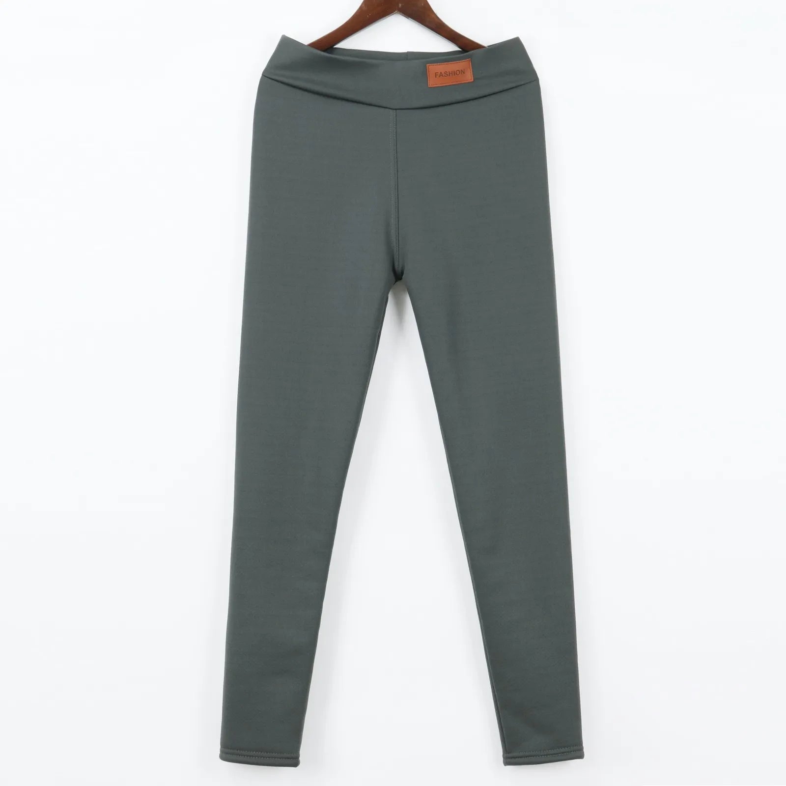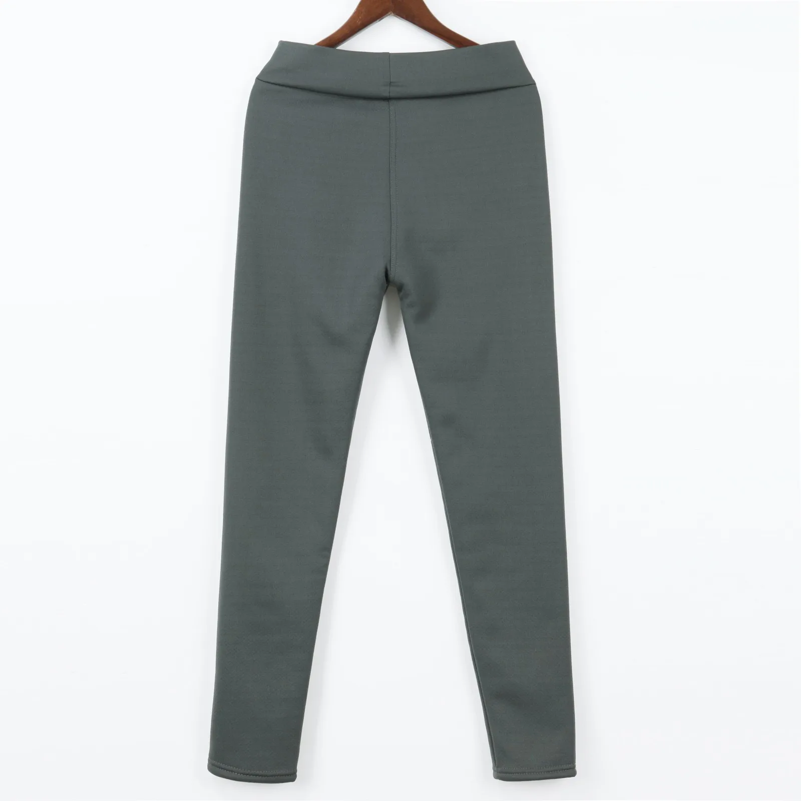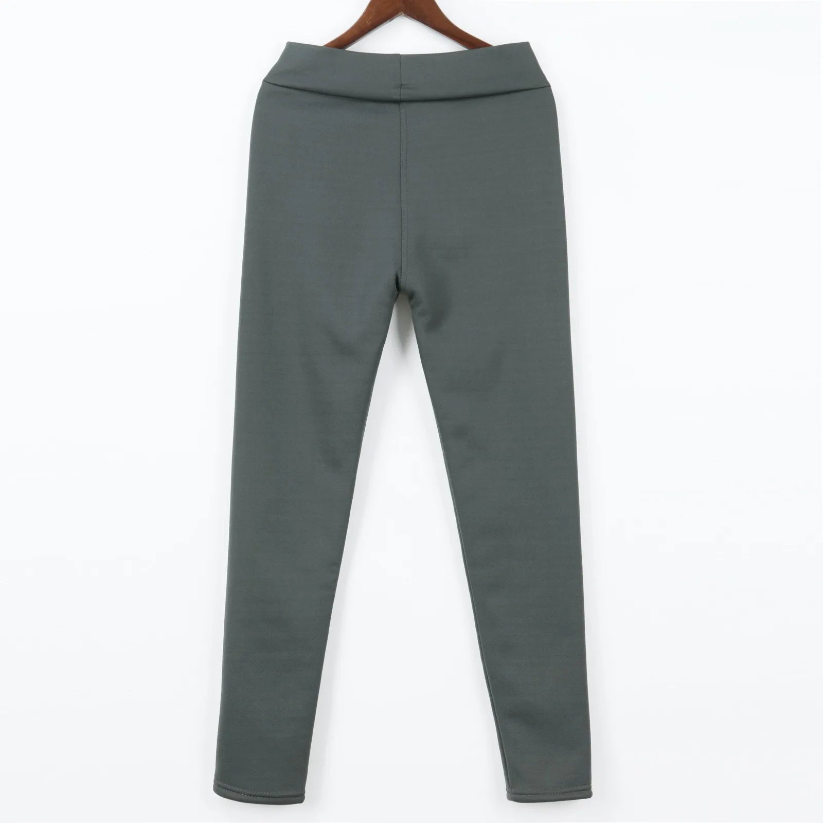 Women Solid Warm Winter Tight Thick Velvet Wool Cashmere Pants Trousers Leggings