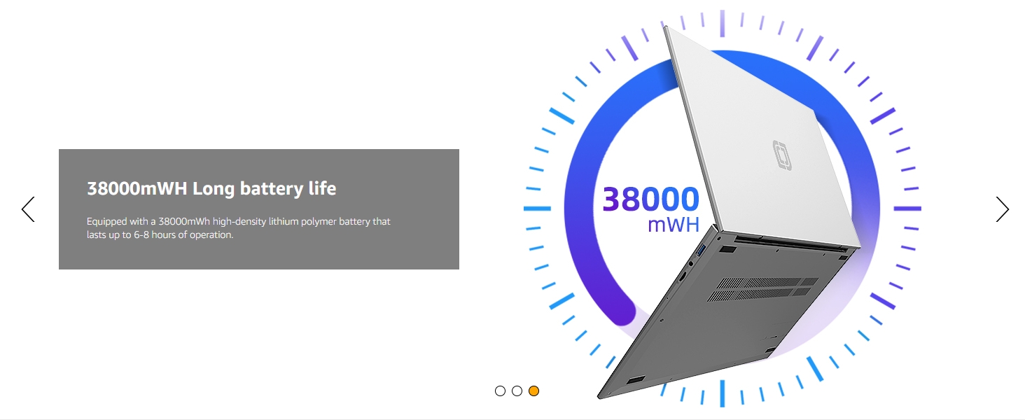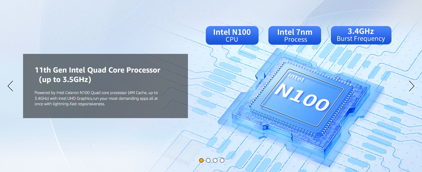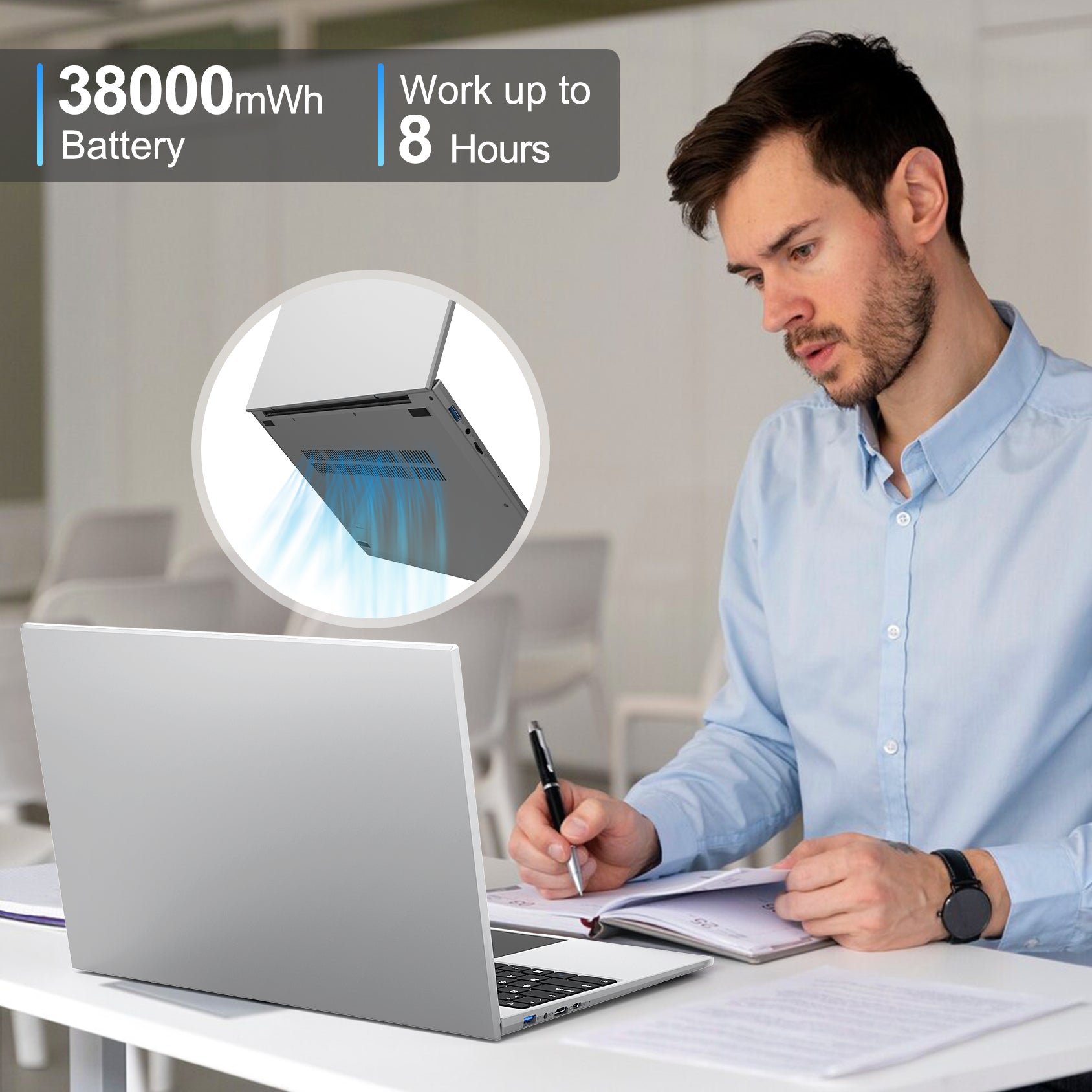 · Laptop equipped with N100 CPU (Up to 3.4GHz), built-in UHD Graphics (Up to 750MHz) with 38WH Li-Polymer Battery, internal cooling holes and fan, 6W TDP, bring you a smooth performance experience, Win 11 operating system to meet your computing needs.