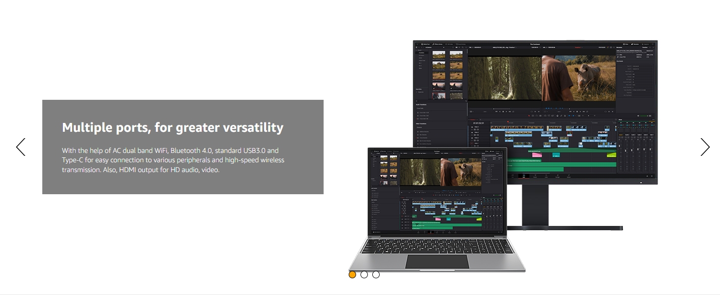 · Notebook is equipped with internal vents for fan cooling to reduce power consumption and extend battery life. In addition, this Ultrabook is equipped with Type-C port x 1, 3.5mm headphone jack x 1, USB 3.0 port x 2, TF slot x 1, quick charger DC port x 1, and Type-C port for connecting different devices at the same time to meet your multi-device needs.