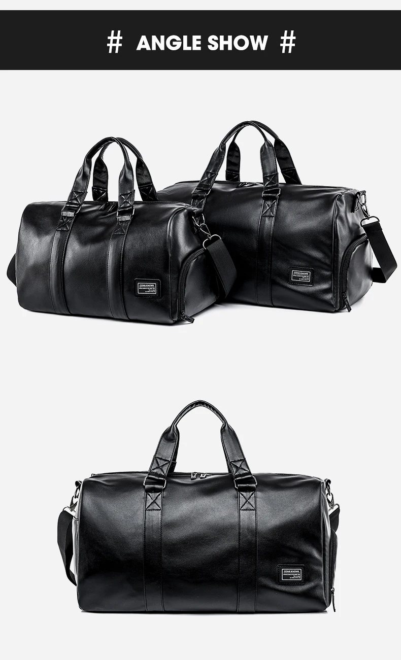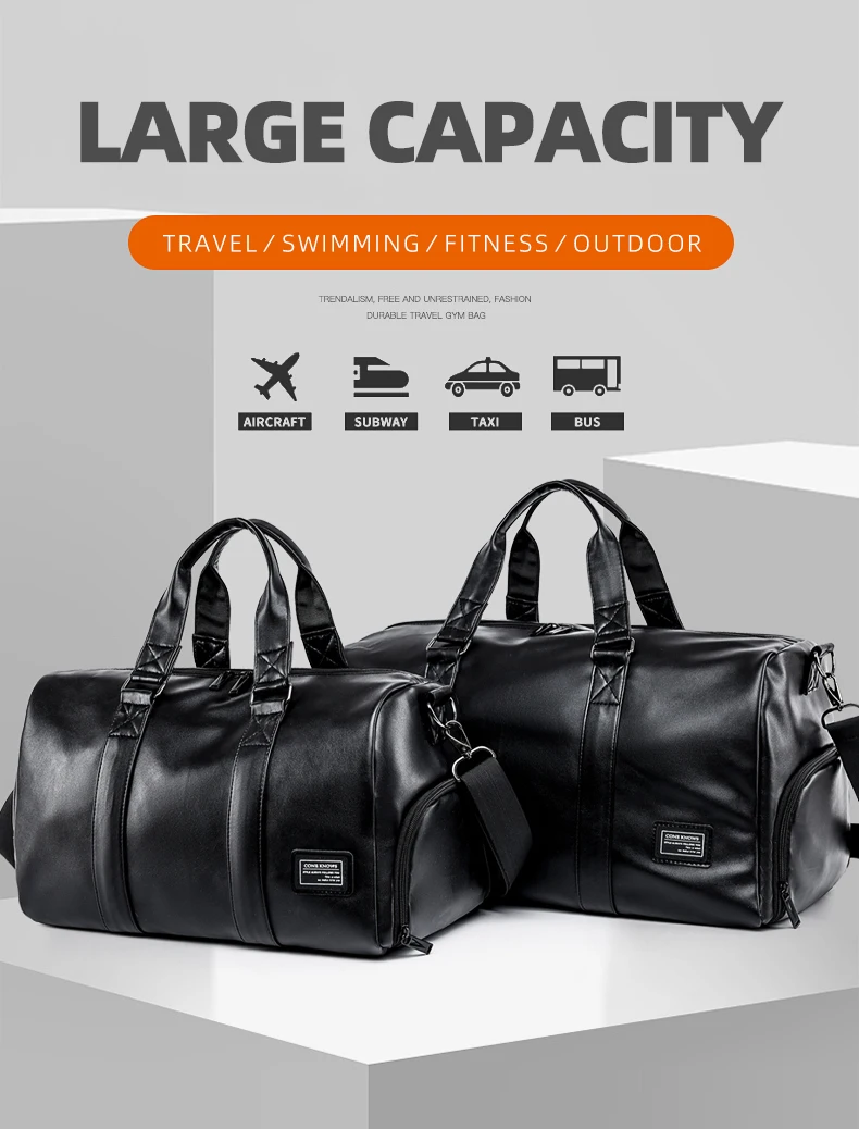 Large Capacity Travel Bag PU Travel Handbag Men Carry On Luggage Duffle Bags Soft Casual Black Big Weekend Bags Travelling Tote