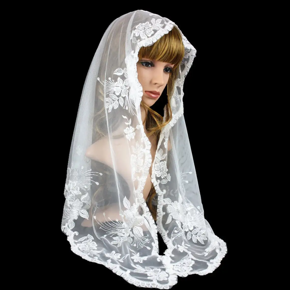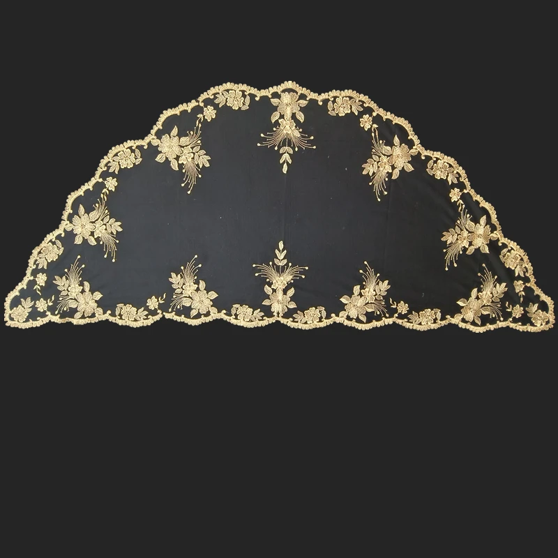 Large Size Half Moon Classic Spanish Style Lace Mantilla Embroidery Triangular Catholic Church Veil for Women
