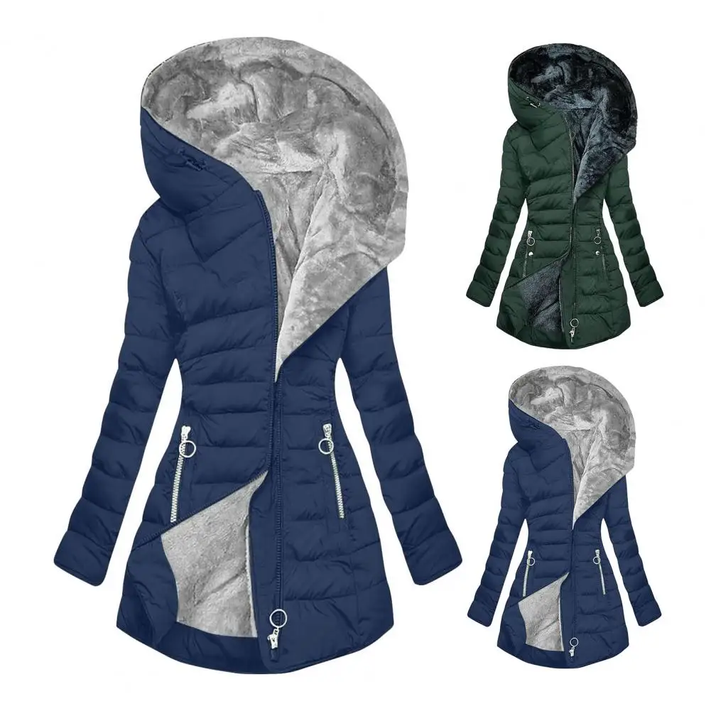 Long Sleeve Coat Plus Size Women's Winter Jacket with Plush Lining Hooded Outerwear Warm Windproof Down Coat for Cold Weather