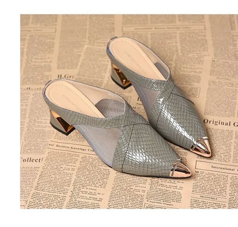 Low Shoes Hoof Heels Rome Synthetic PU Fabric Rubber Low Shoes PU Rubber Hoof Heels Fabric Rome