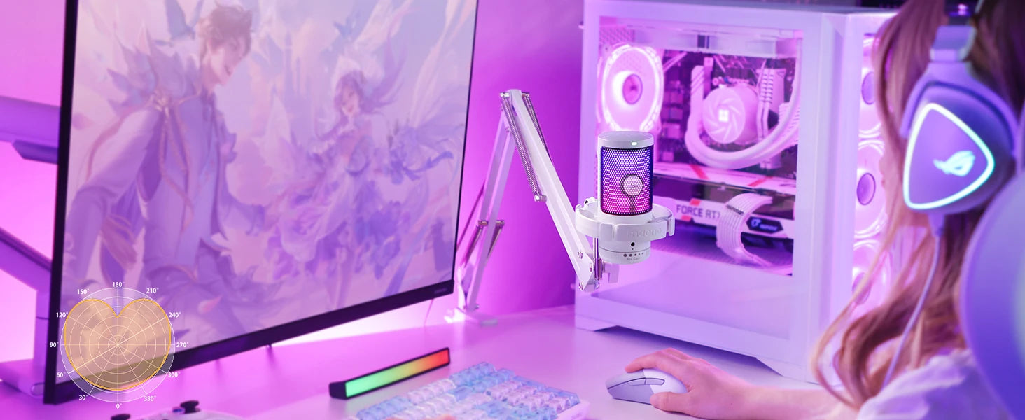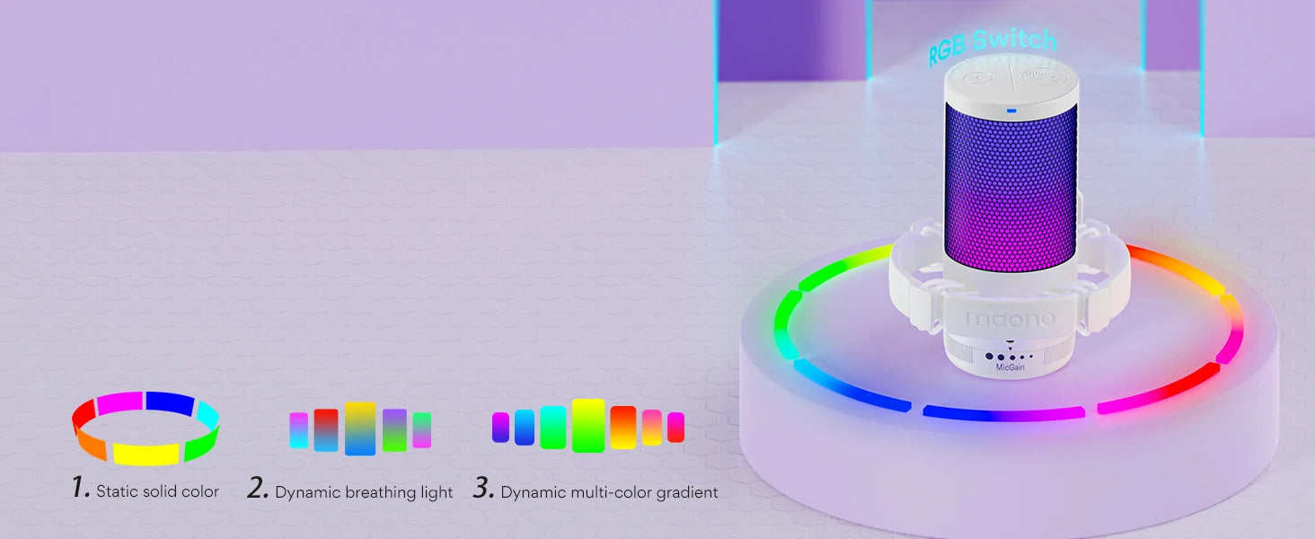 DGM20S Features: ENC Noise cancellation,Controllable RGB lights,Real-time monitoring,One-button mute,Adjustable gain,Includes shock mount and pop filter