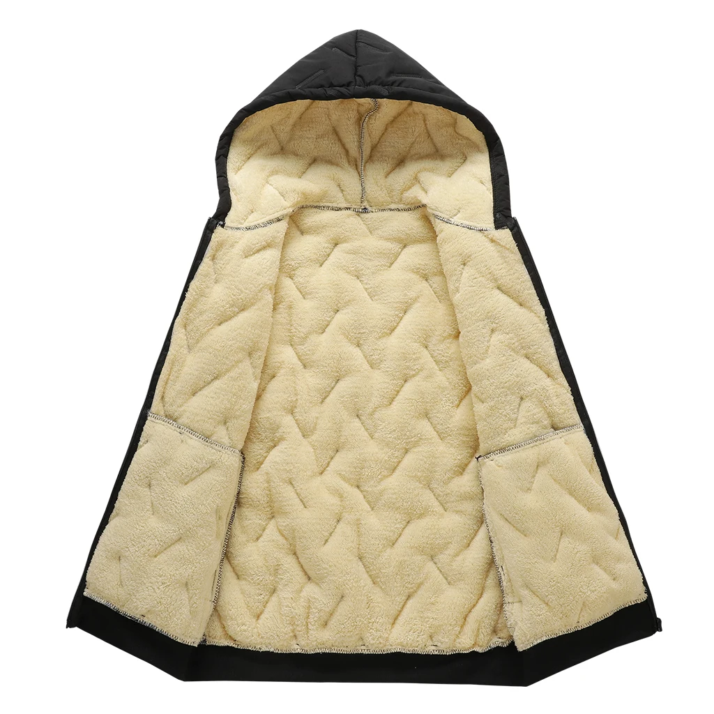 Men’s Winter Parka Jacket Fleece Lined Warm Hooded Coat Cotton Padded Zip Up Outerwear Casual Thick Windbreaker for Cold Weather