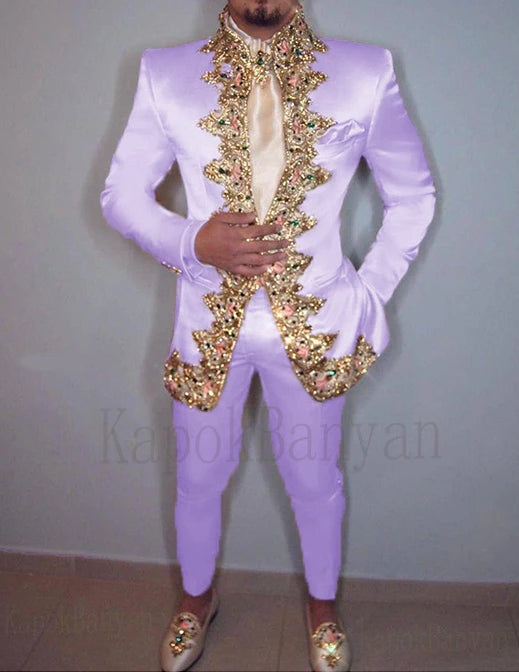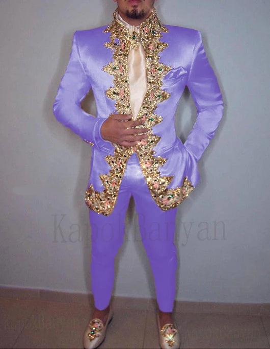 Men Suit 2020 Two Piece (Jacket+Pants+Belt) Italian Stand Collar Slim Fit Wedding Suit for Men Custom Made Embroidery Suit