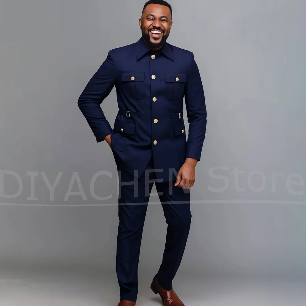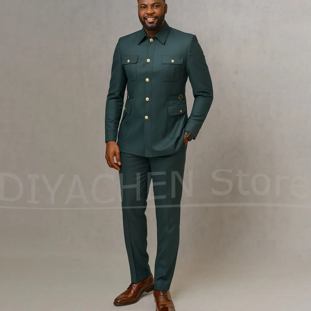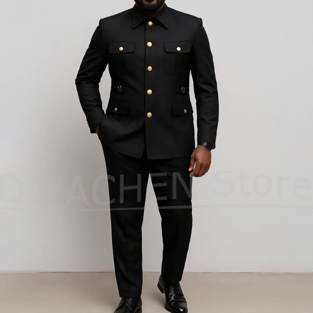 Men Suits 2 Piece Fashion Stand Collar Four Pockets Single Breasted Outfits Slim Chic Business Casual Wedding Party Tuxedos