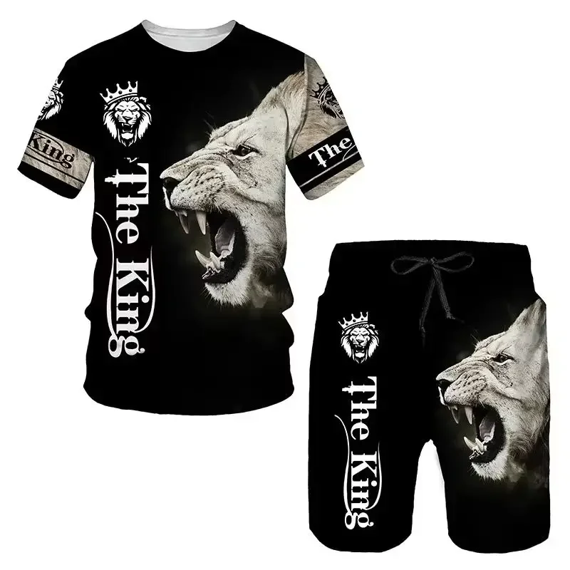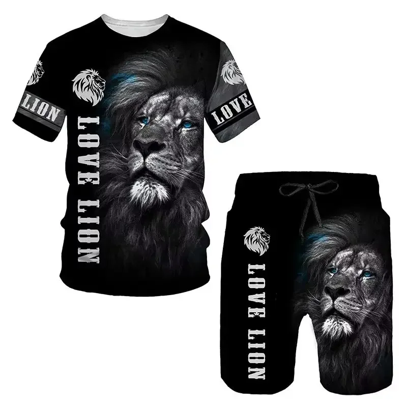 Men's Outdoor Printed T-shirt Shorts 2-piece Set 3D Printed O-neck Fashionable Men's Casual Breathable and Comfortable Set