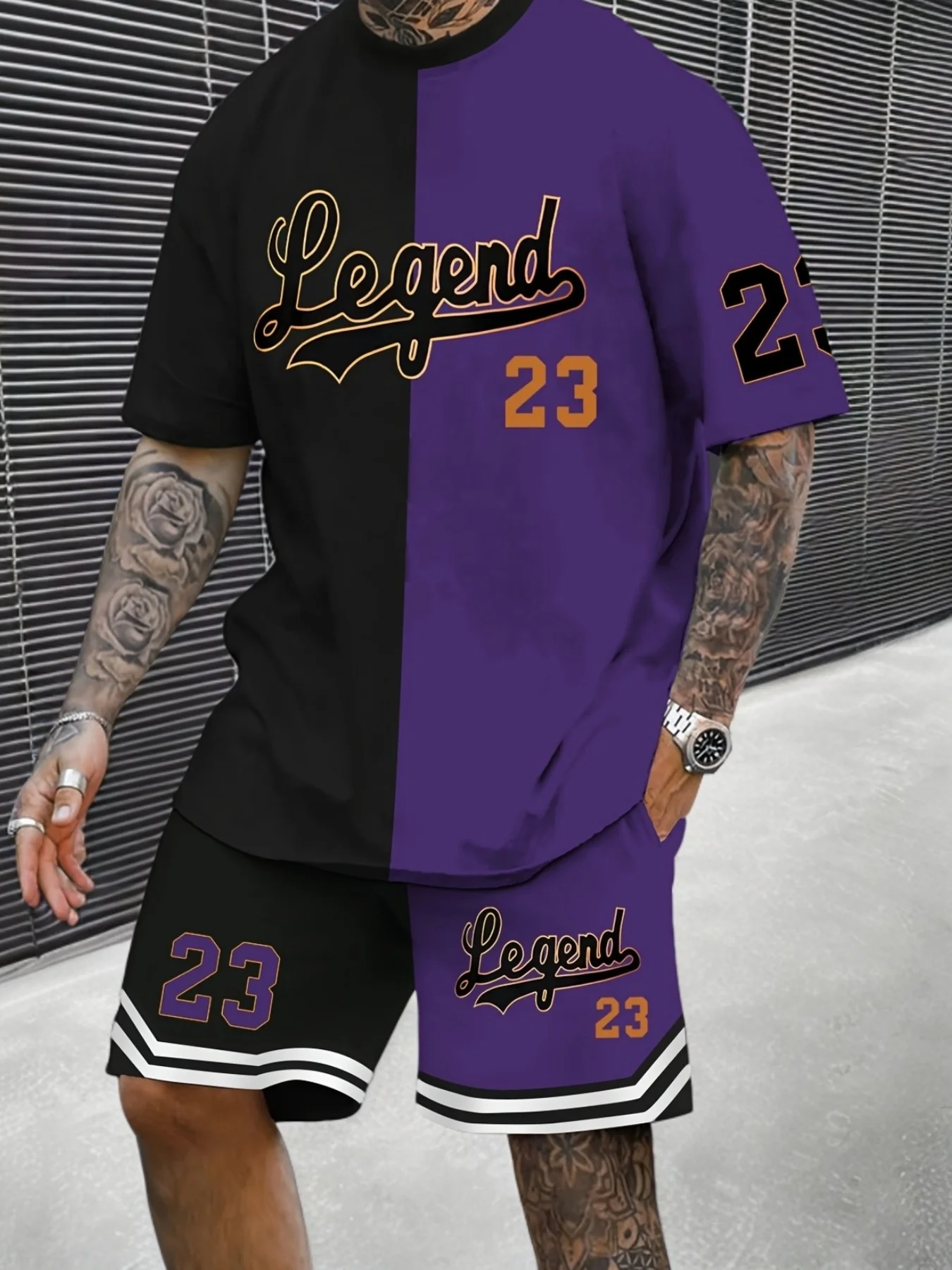 Men's Summer Fashion 2-Piece Set: Chicago Printed T-Shirt & Shorts - Casual Polyester Blend, Machine Washable