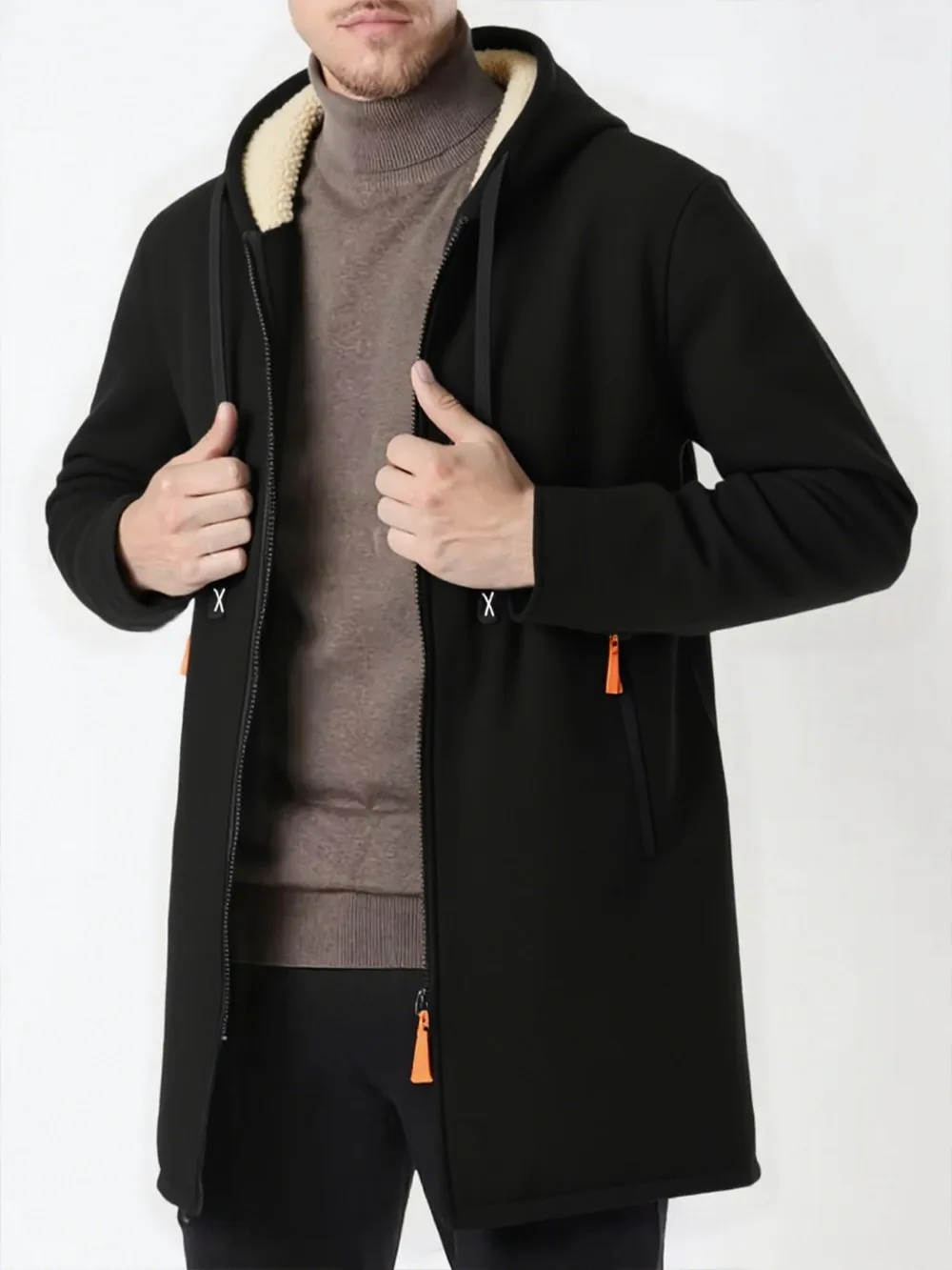 Men's Thickened Long Overcoat Jackets Winter Warm Zipper Hoodies Long Sleeve Sweatshirts Outdoor Solid Color Streetwear Tops