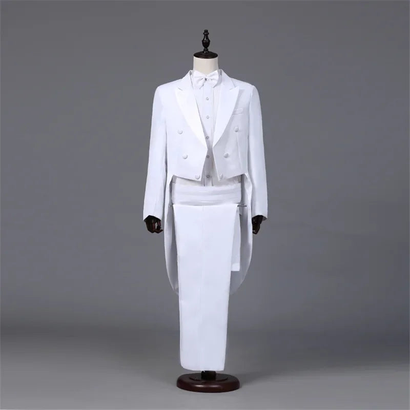 Men's Tailcoat Classic Modern White and Black Basic Style Mens Suit with Tailcoat Singer Magician Stage Jacket Outfits
