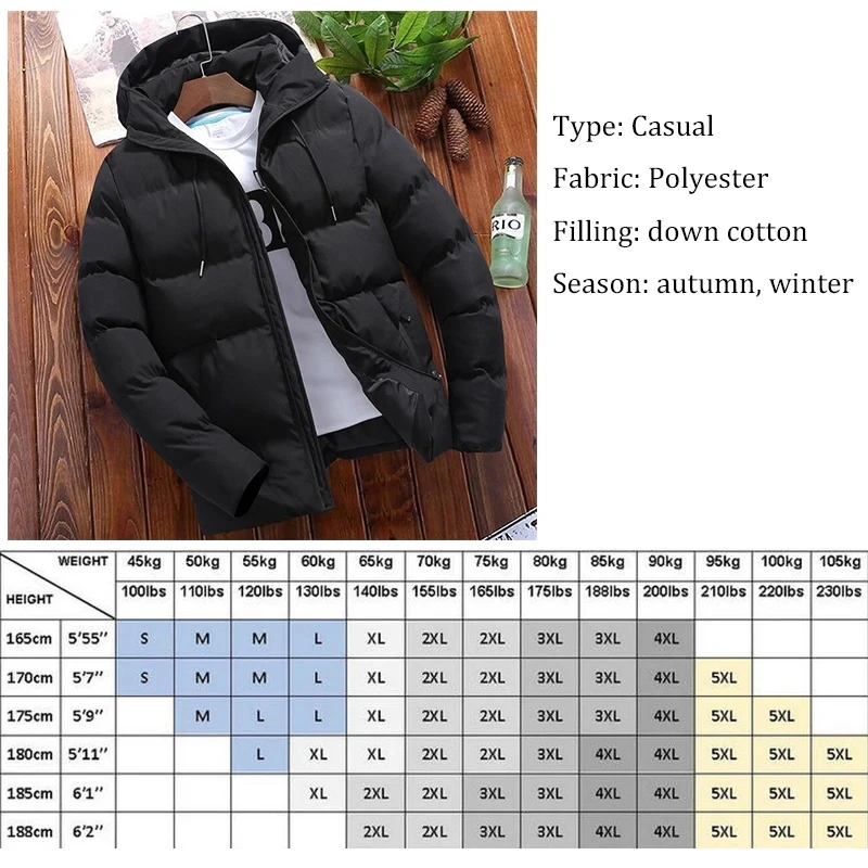 Men's Winter Hooded Jacket Warm Windproof Casual Coat plus Size Cotton Padded Outerwear 6XL Loose-fit Cropped Parka for Outdoor