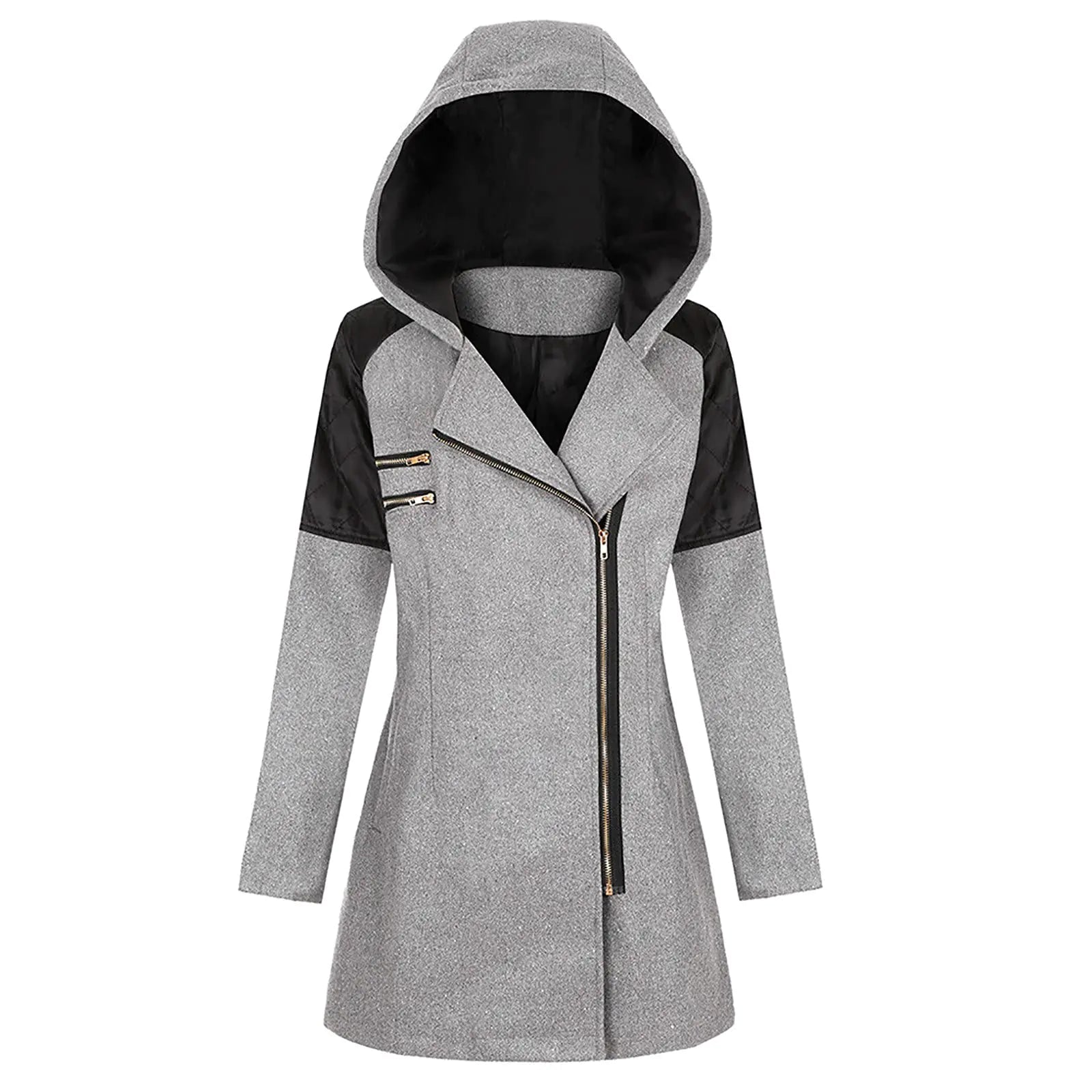 Meoguillat Winter Trench Coat Women Lapel Double Breasted Wool Blend Pea Coats Fashion Plaid Hooded Long Jacket with Belted
