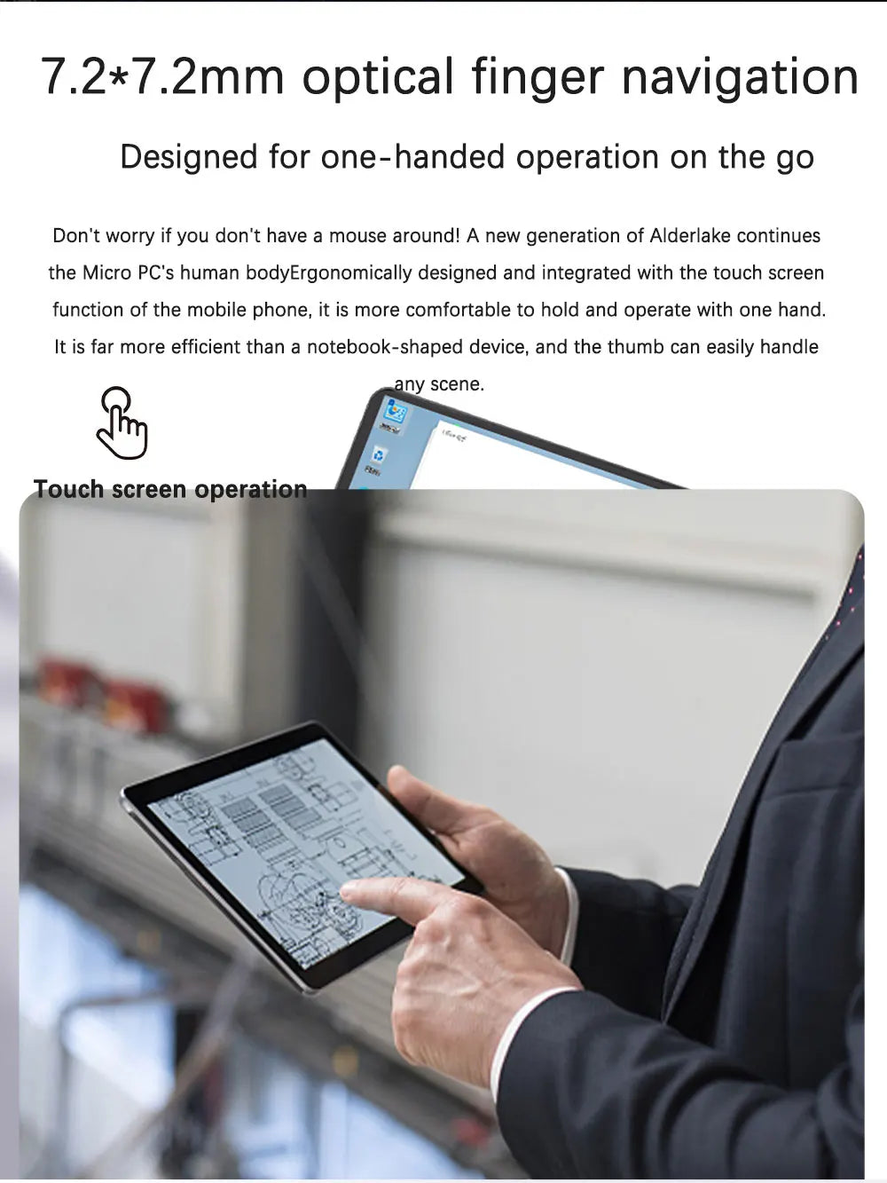 Mini Laptop 8 inch HD Touch Screen Mini Computer Windows 11 Pro Intel N100 4 Cores 2-in-1 Pocket PC 12GB LPDDR5 RAM 1TB M.2 SSD