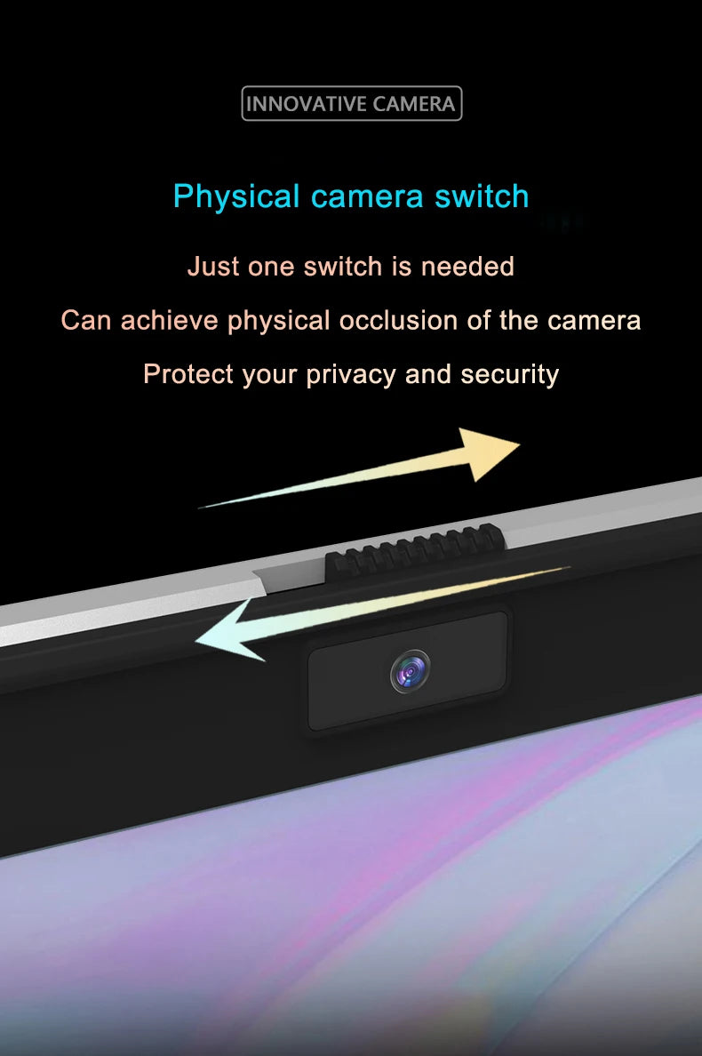 Physical Camera Switch: Protects user privacy and prevents unauthorized access. With a physical switch, you can turn the camera on or off at any time to ensure your privacy.