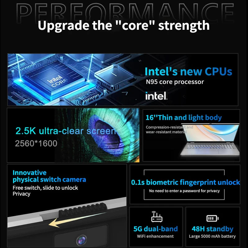 A smart device that combines excellent performance and stylish design. Equipped with the latest N95 processor, 16GB/32GB memory, and multiple hard drive options (256GB/512GB/1024GB/2048GB), it helps you easily handle various complex tasks. A 16 inch 2K resolution screen with a 240Hz refresh rate, providing you with the ultimate visual experience.