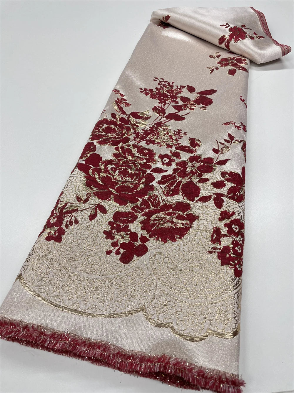 New Arrival African Brocade Lace Fabric Jacquard Organza Fabric High Quality Damask Jacquard for Wedding Evening Dresses 5yards