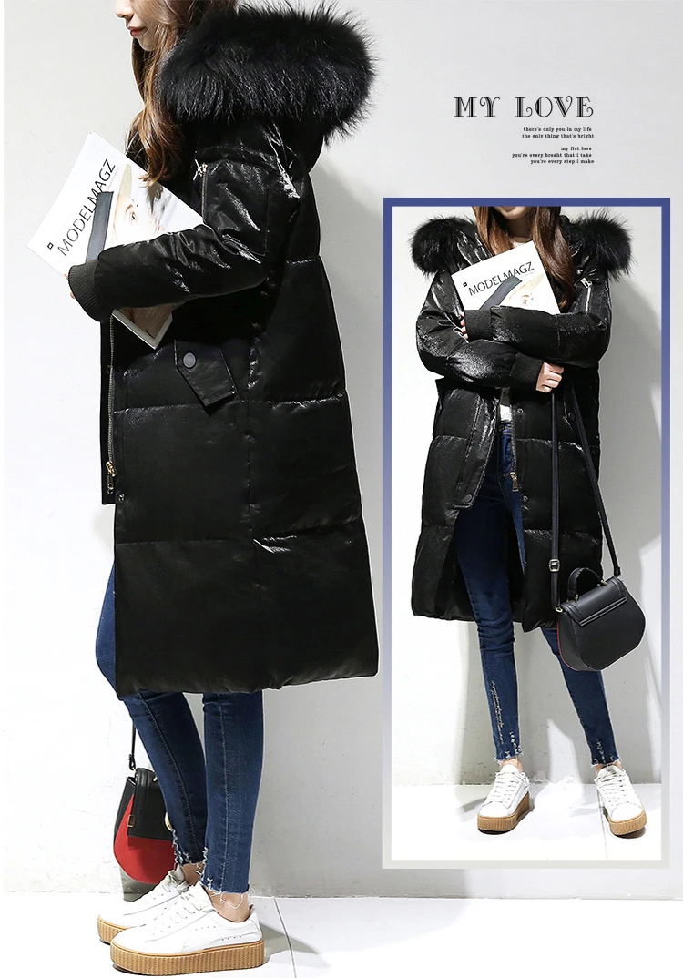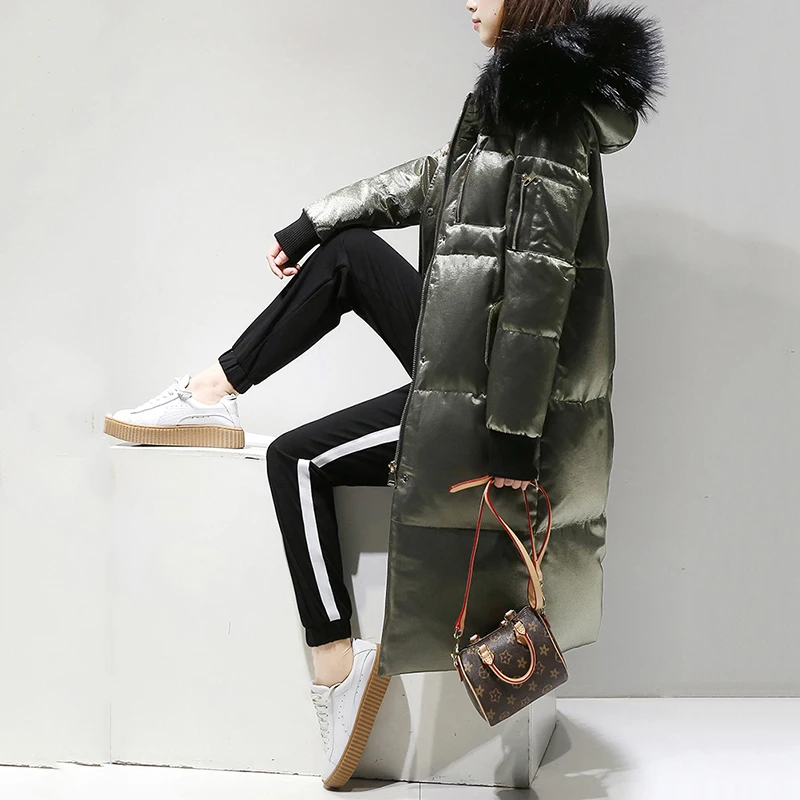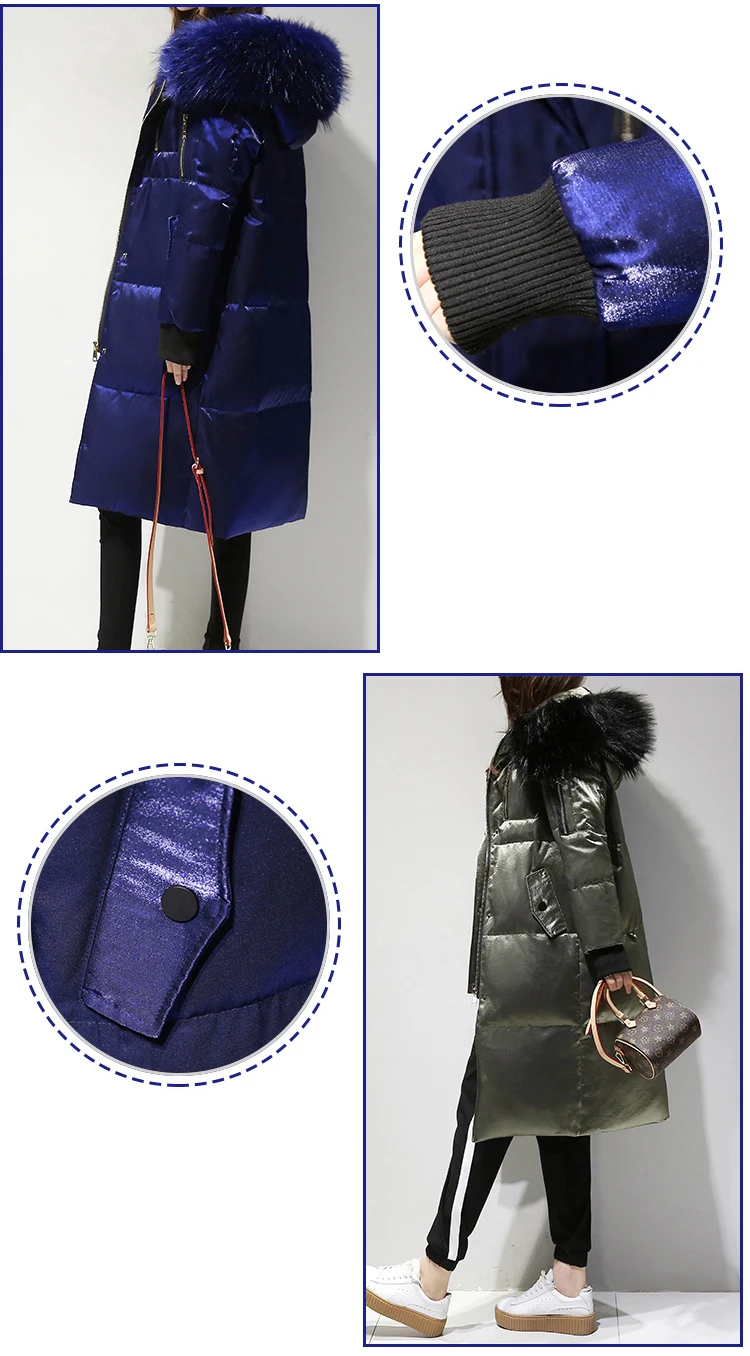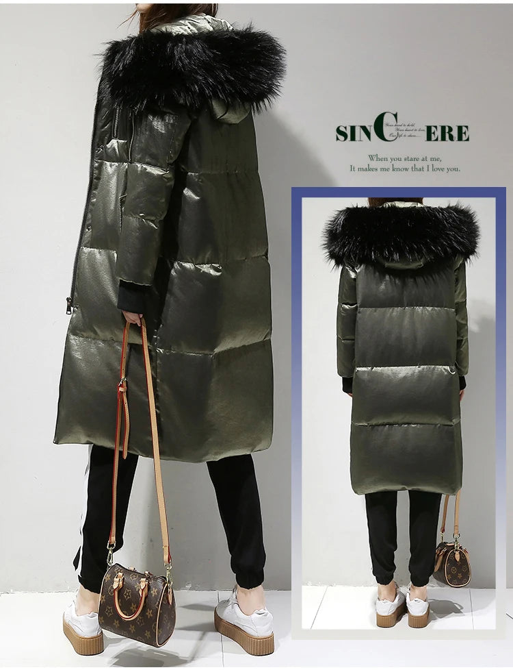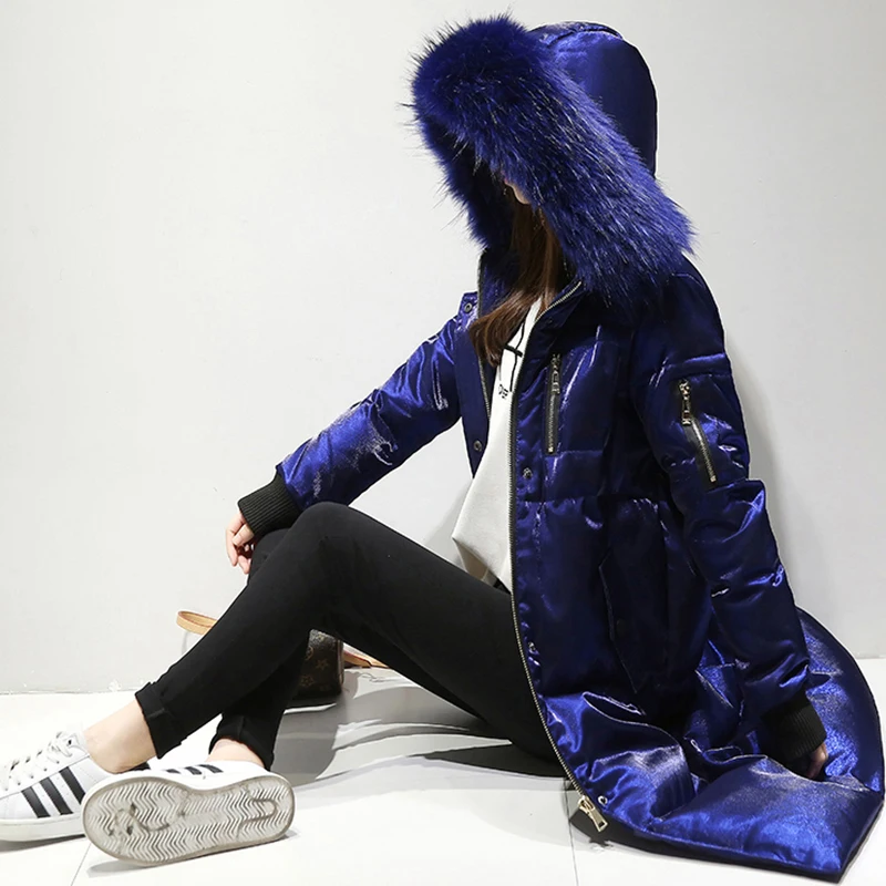 New Listing Winter Women Large Size Down Jacket Female Long Hooded Big Fur Collar Down Jacket Coat Womens Thick Warm Outerwear