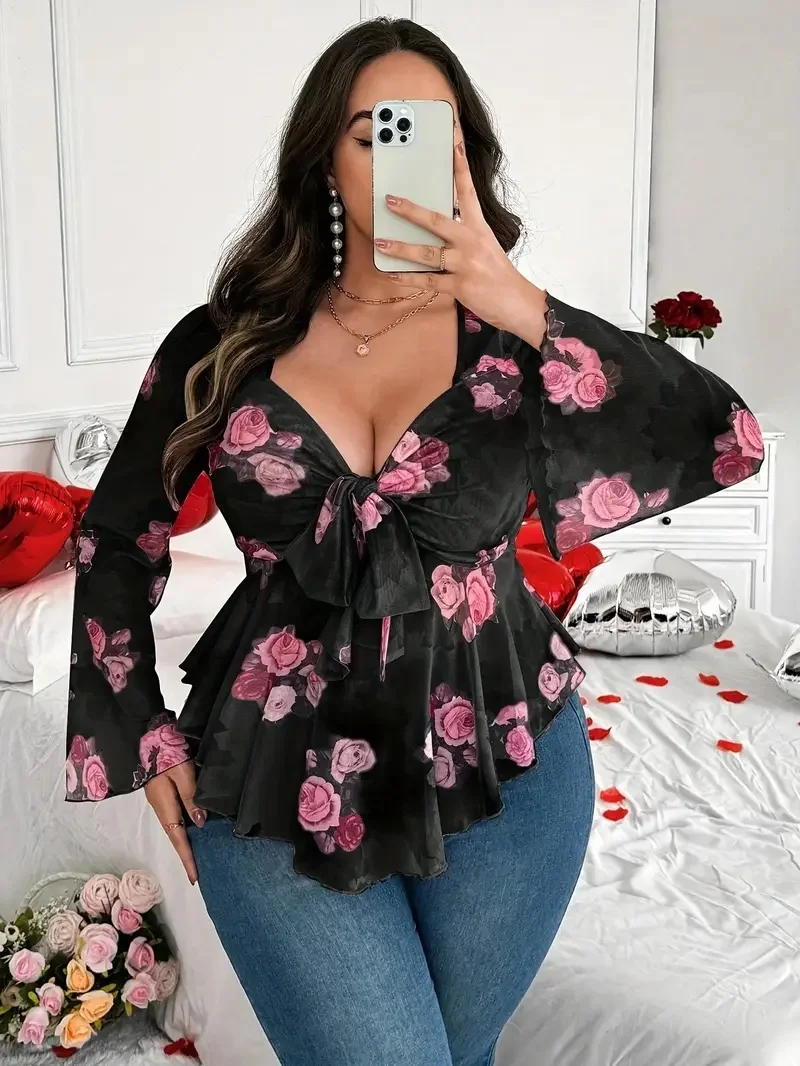 Featuring a stunning rose flower print, this blouse exudes elegance and sophistication, perfect for any occasion.