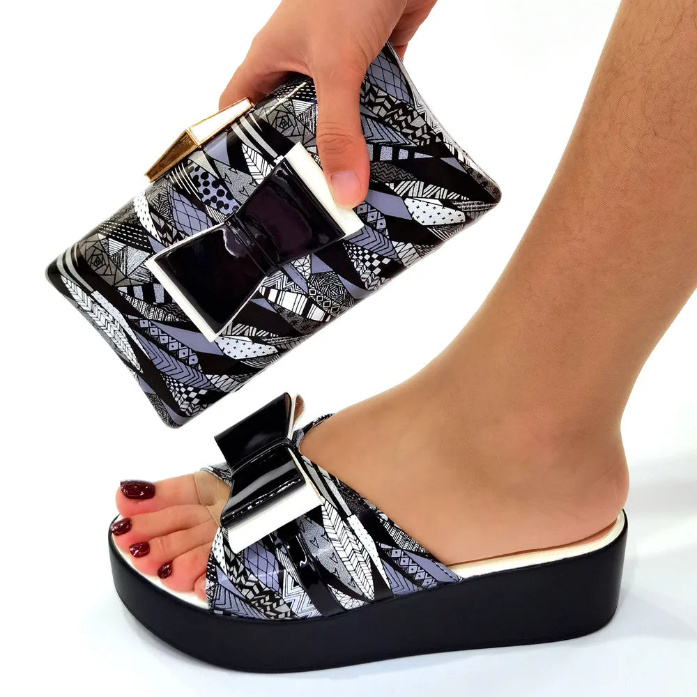 New Shoes and Bag for Party Wedding Womens Platform Heels Patent Leather Wedding Shoes for Women Bride Wedges Shoes for Women