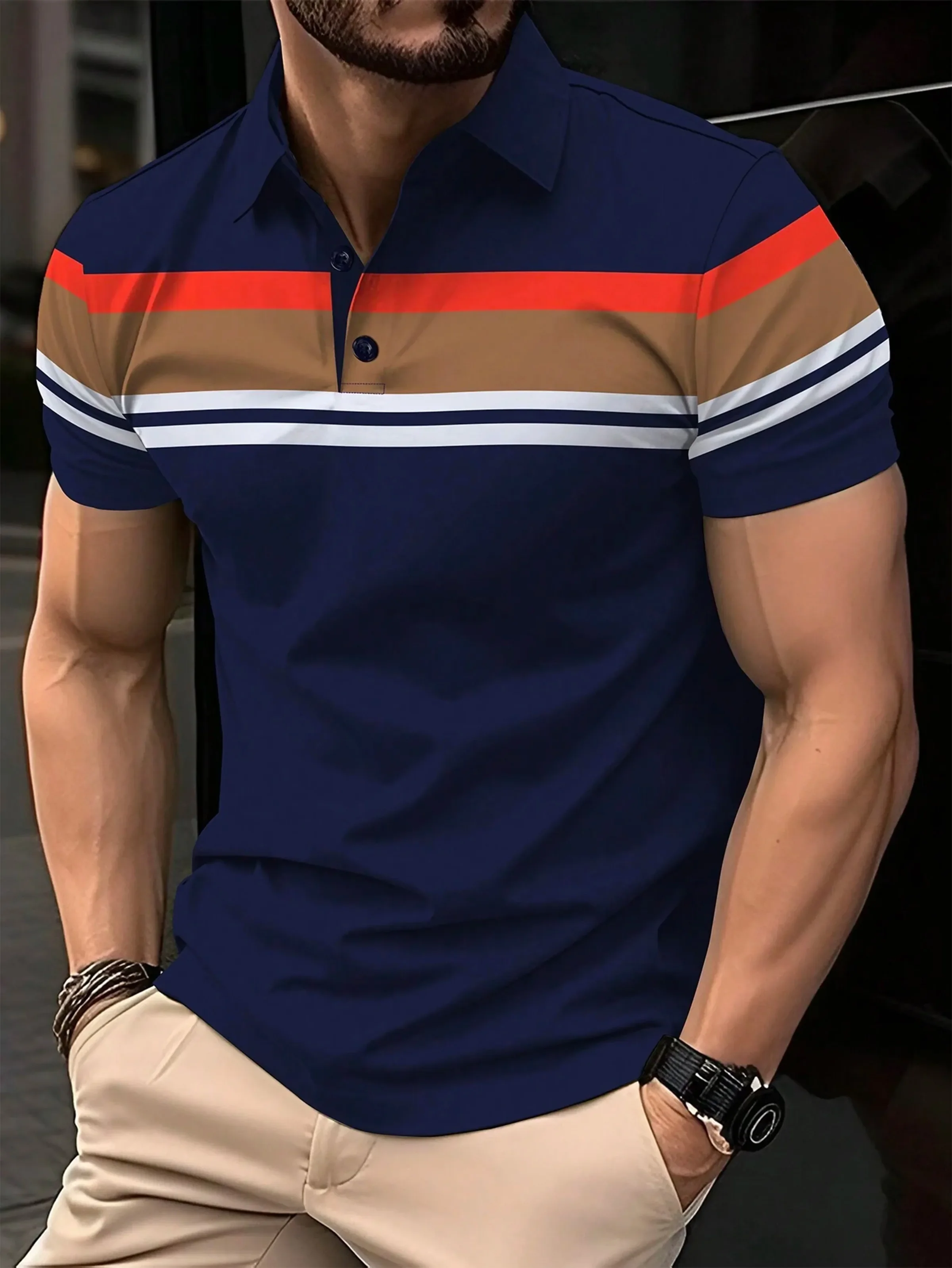New Summer Men's Polo Shirt Button Collar Short Sleeve Pullover Casual Sports Solid Color Striped Lapel Trend Men's T Shirt