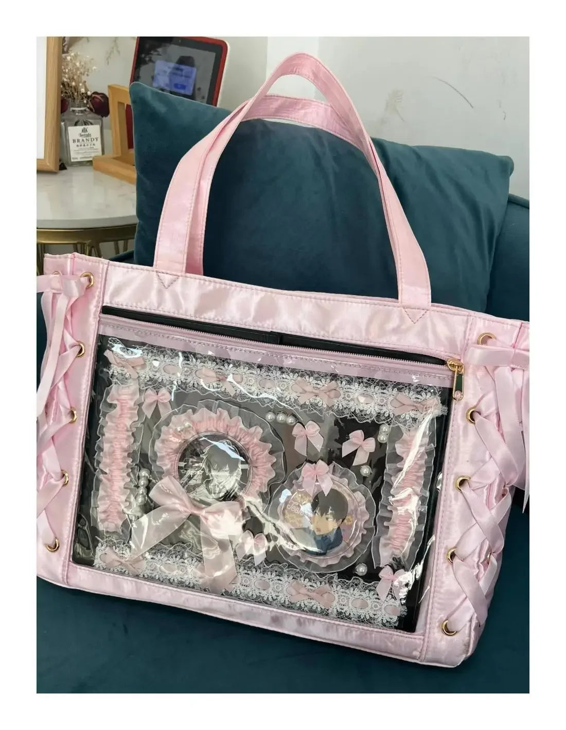 New Y2K Sweet Lolita Pink Ita Bag Women Japanese Transparent Large Capacity Tote Bag Ladies Harajuku Kawaii Handbag Aesthetic