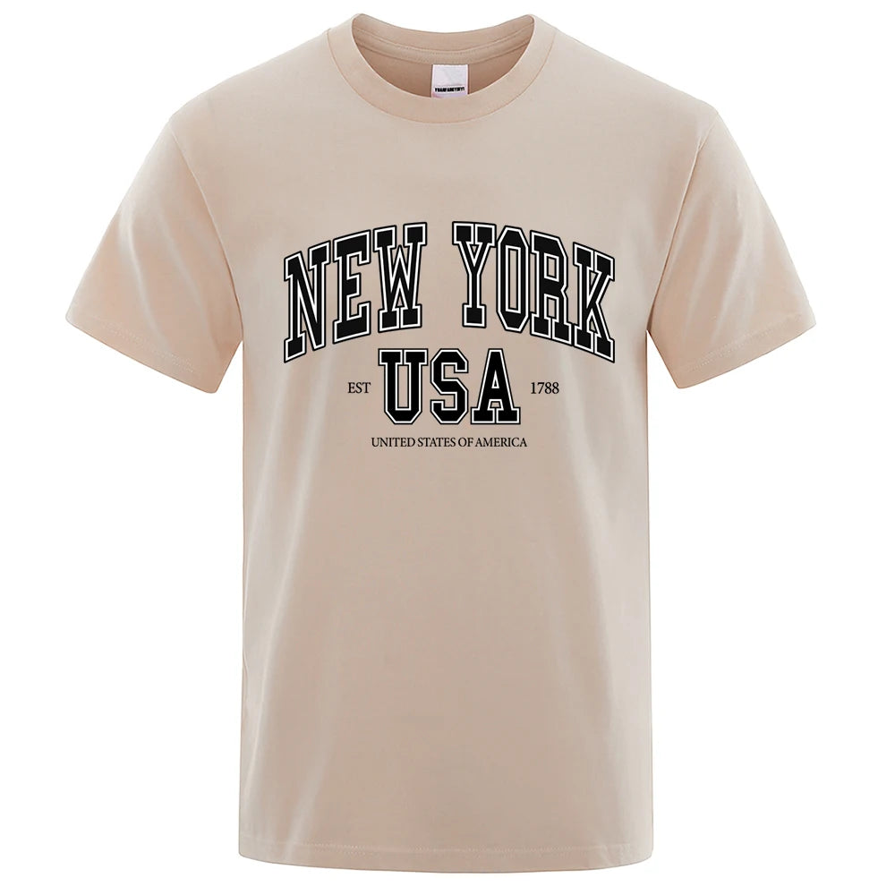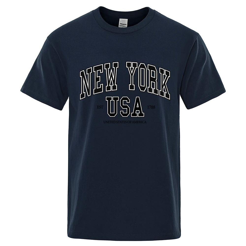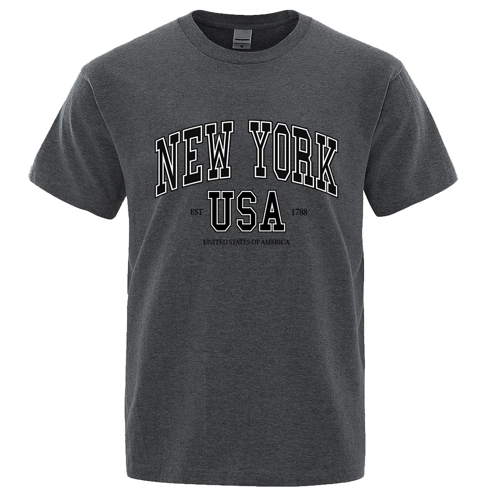 New York Usa Est 1788 Street City Letter Tops Men O-Neck Shirt Summer Loose Clothing Loose Cotton Oversize Tshirt Hip Hop Tops