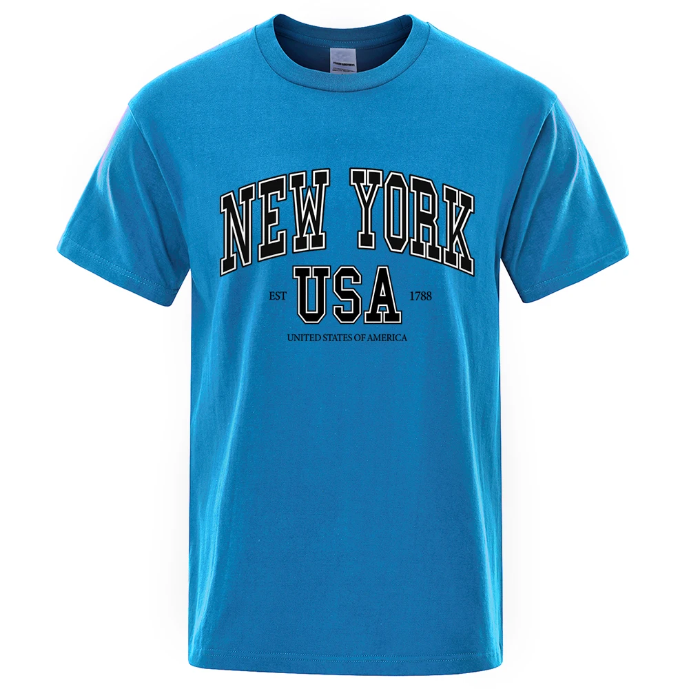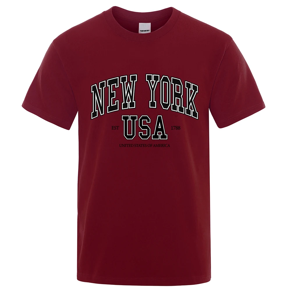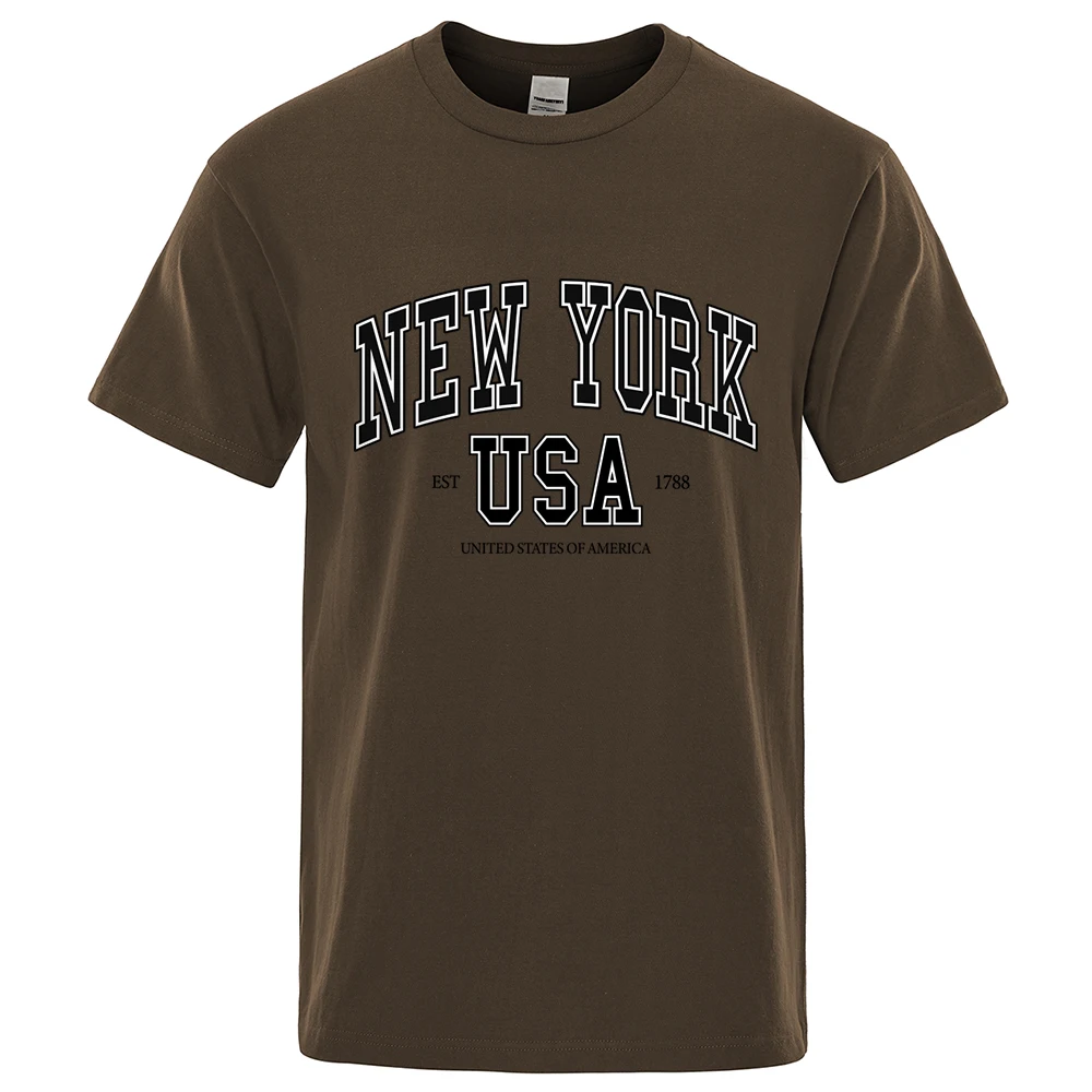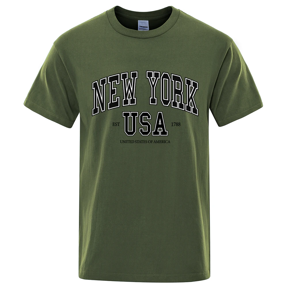 New York Usa Est 1788 Street City Letter Tops Men O-Neck Shirt Summer Loose Clothing Loose Cotton Oversize Tshirt Hip Hop Tops