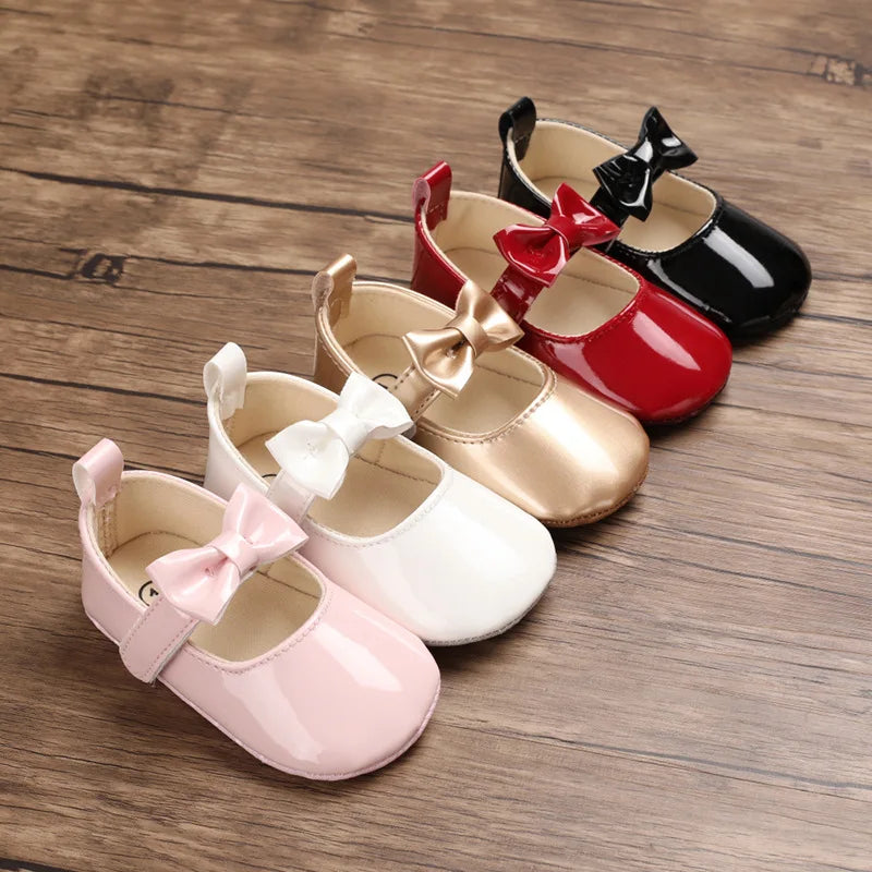 Newborn Baby Shoes Baby Girls Shoes PU Anti-slip Bowknot Classic Princess Dress Shoes First Walker Toddler Crib Shoe Moccasins