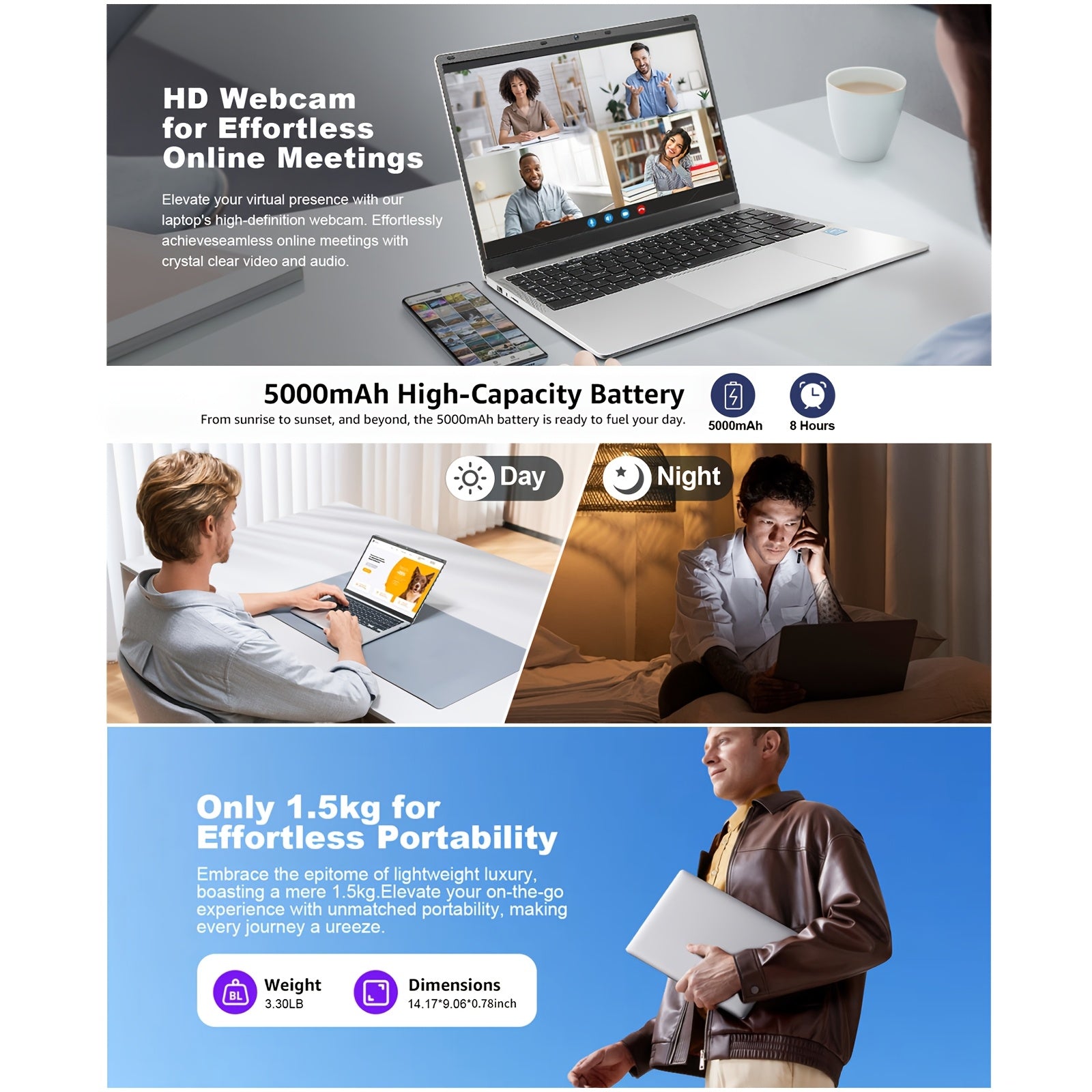 Newest 15.6 FHD Student Laptop Computer, Business Person PC Work Notebook Computers for College Students, Intel Celeron Dual Core Processor Up to 2.60Ghz, 8GB RAM, 256GB SSD, Webcam, Slim Portable Latest Generation Business L