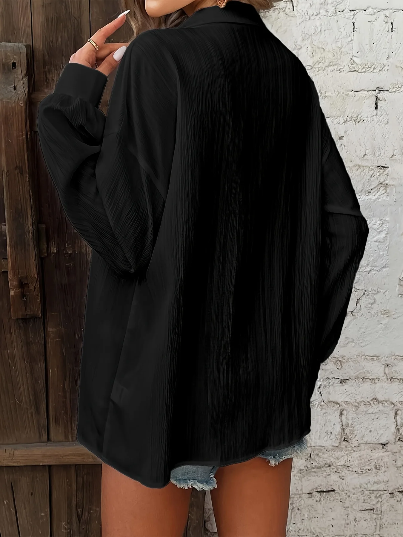 Plus Size 1XL-5XL All Season Women's Fashionable Solid Color Button Up Shirt Women Casual Long Sleeved Lapel Shirt