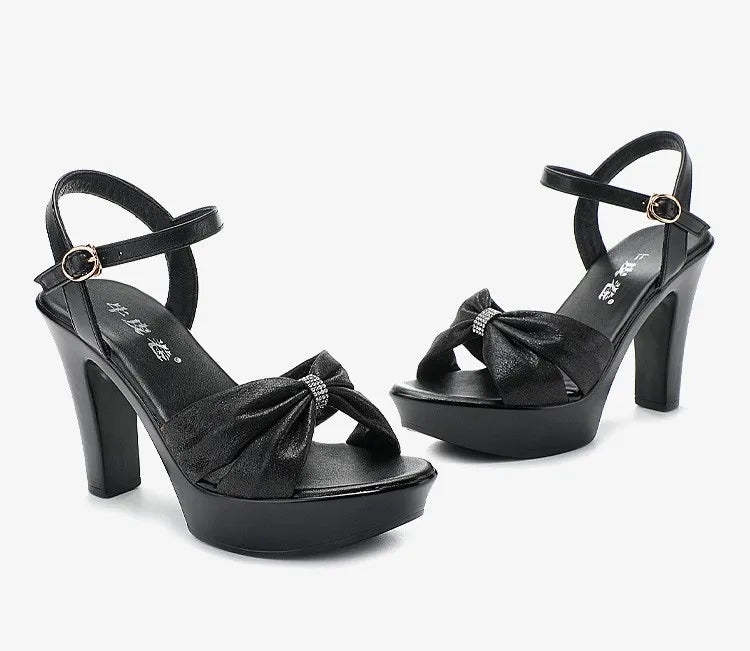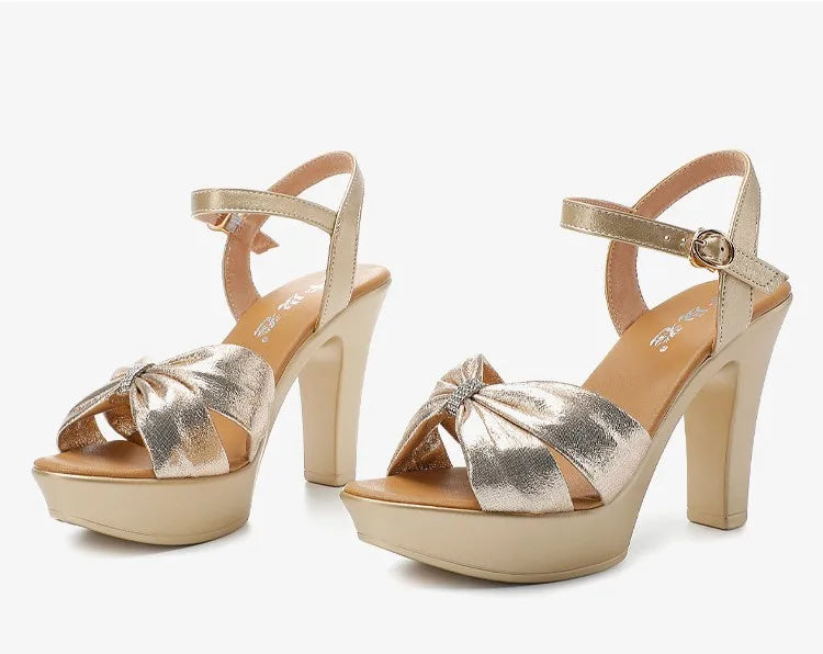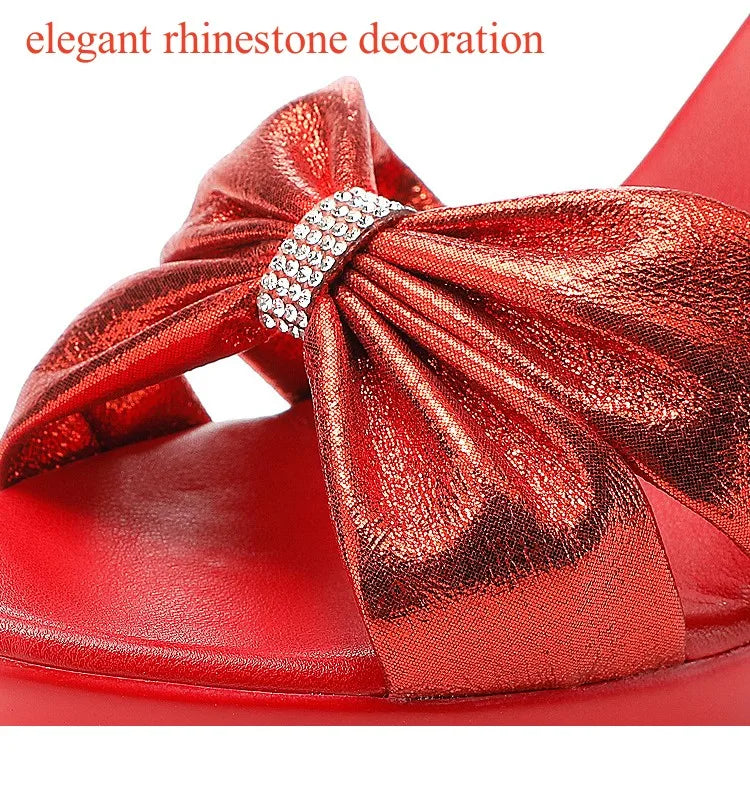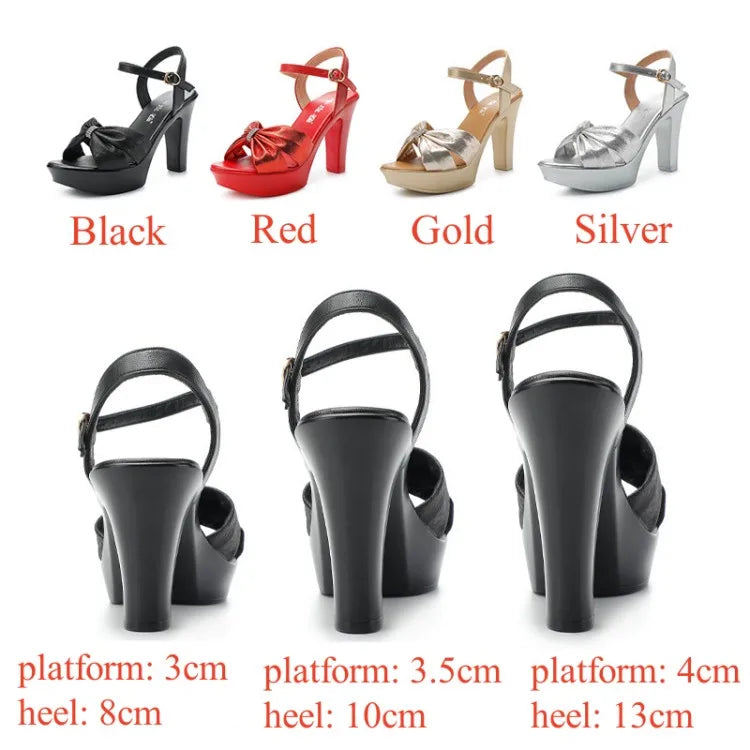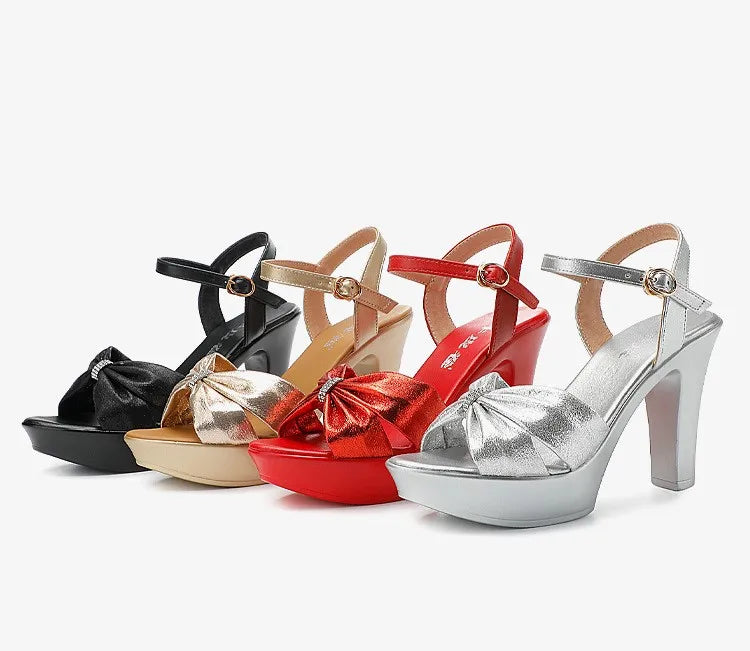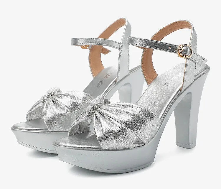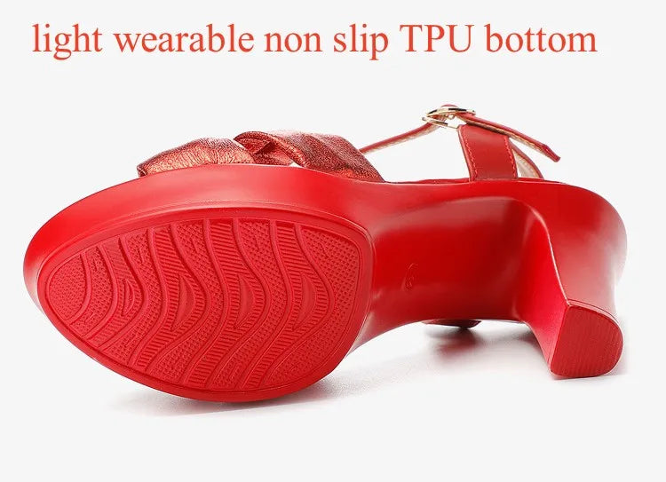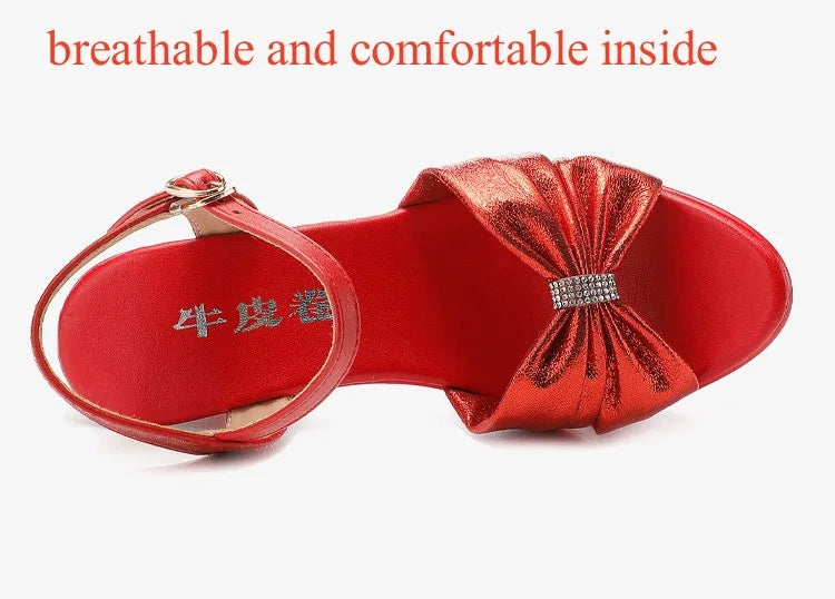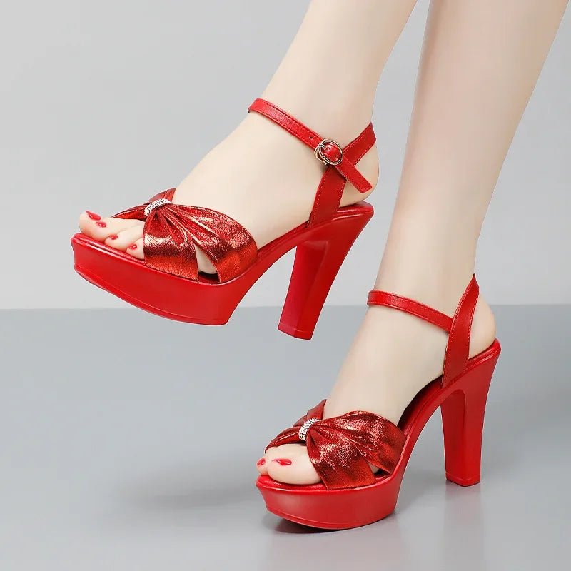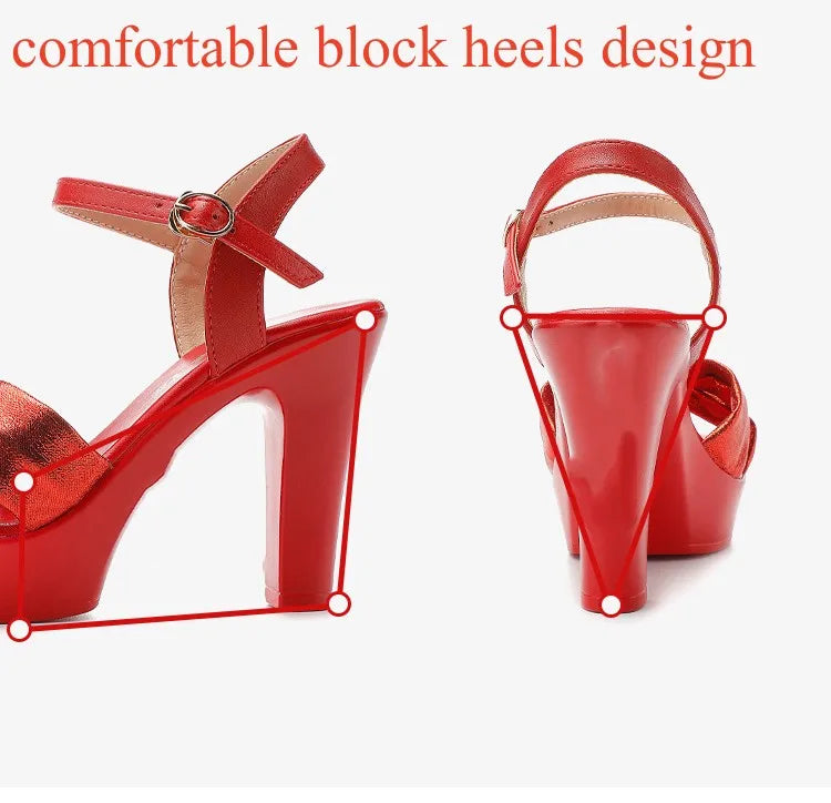 Plus Size 32-43 Elegant Silver Red Wedding Shoes Women Platform Sandals Summer 2025 Block High Heels Leather Sandals Model