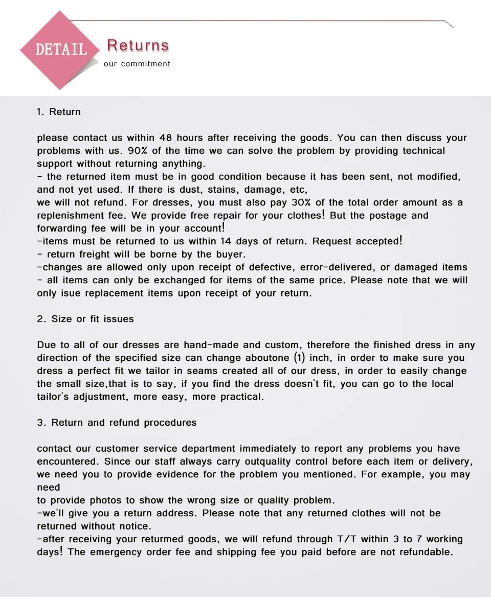This product is customized item, which is not eligible for return without reason.Please kindly note this product is customized item, the return policy differs from that of regular products, it is not eligible for return without reason.