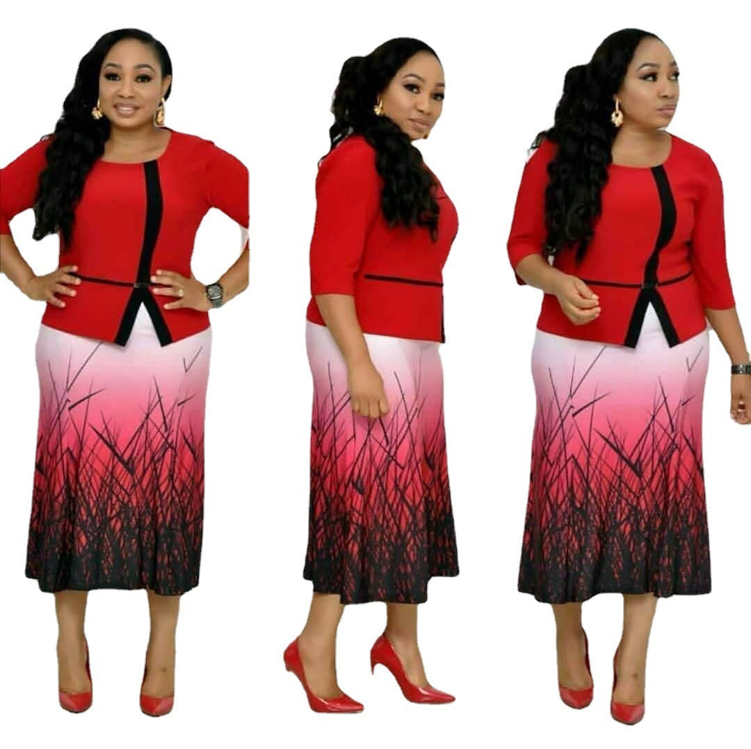 Printed Mid-length Dress African Mother Dress