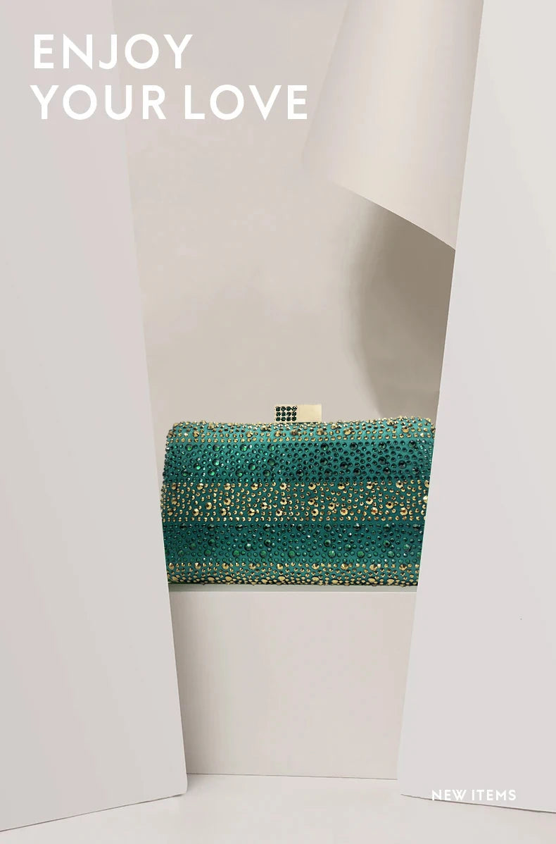QSGFC Nigerian Women Heel Party Ladies Italian Design Green Shoes And Bag Set Decorated with Rhinestone Handbag Wedding Party