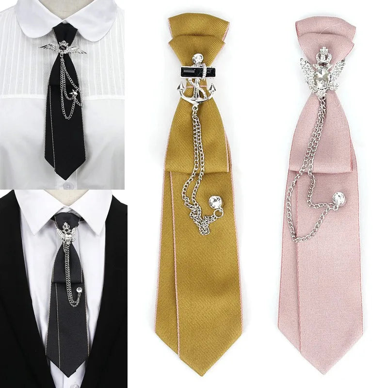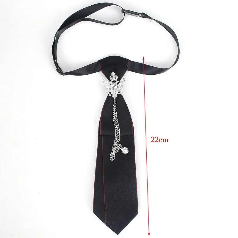 Retro Fabric Ribbon Rhinestone Black Bow Tie Collar Bowkont Cravat School Girl Boys Gifts for Women Clothing Jewelry Accessories