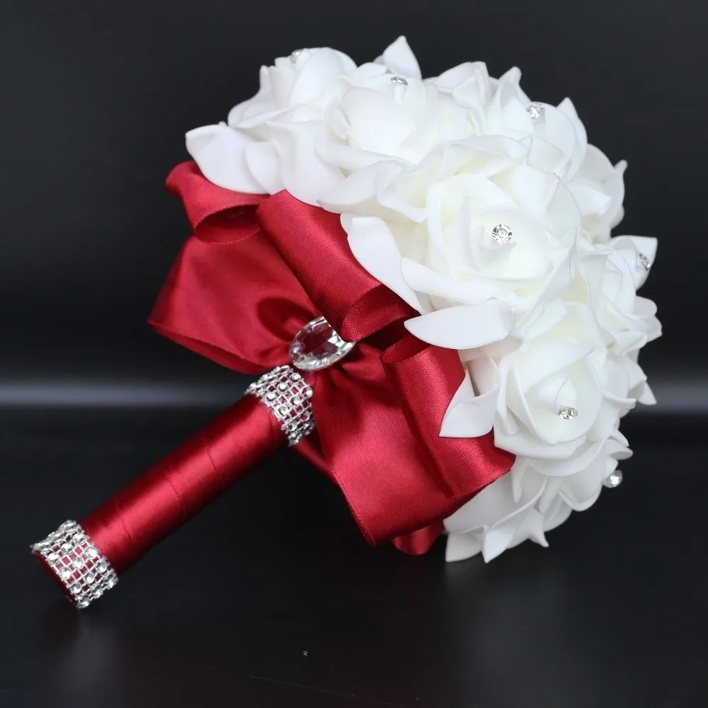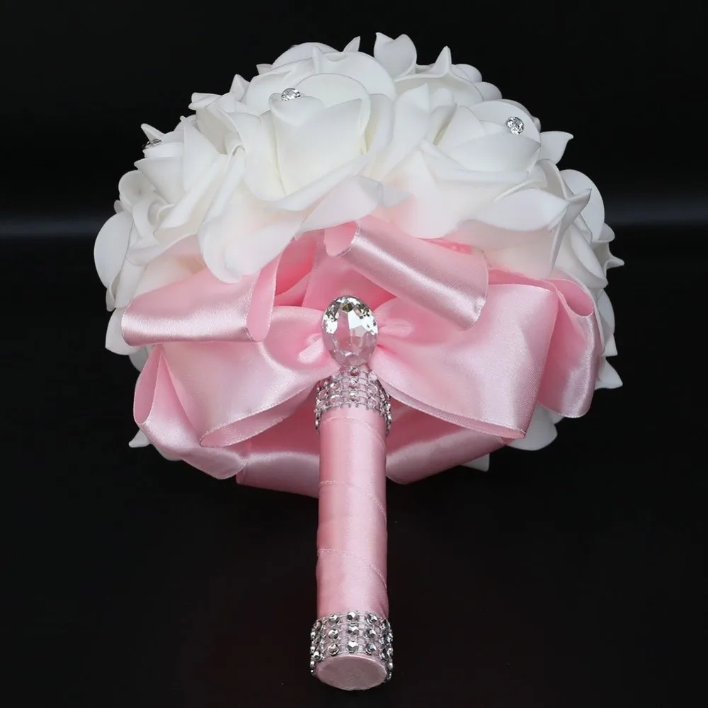 Romantic Rose Flower Bouquet PE Flower Satin Bridal Wedding Bouquet Simulation Artificial Rose Flower Bridal Wedding