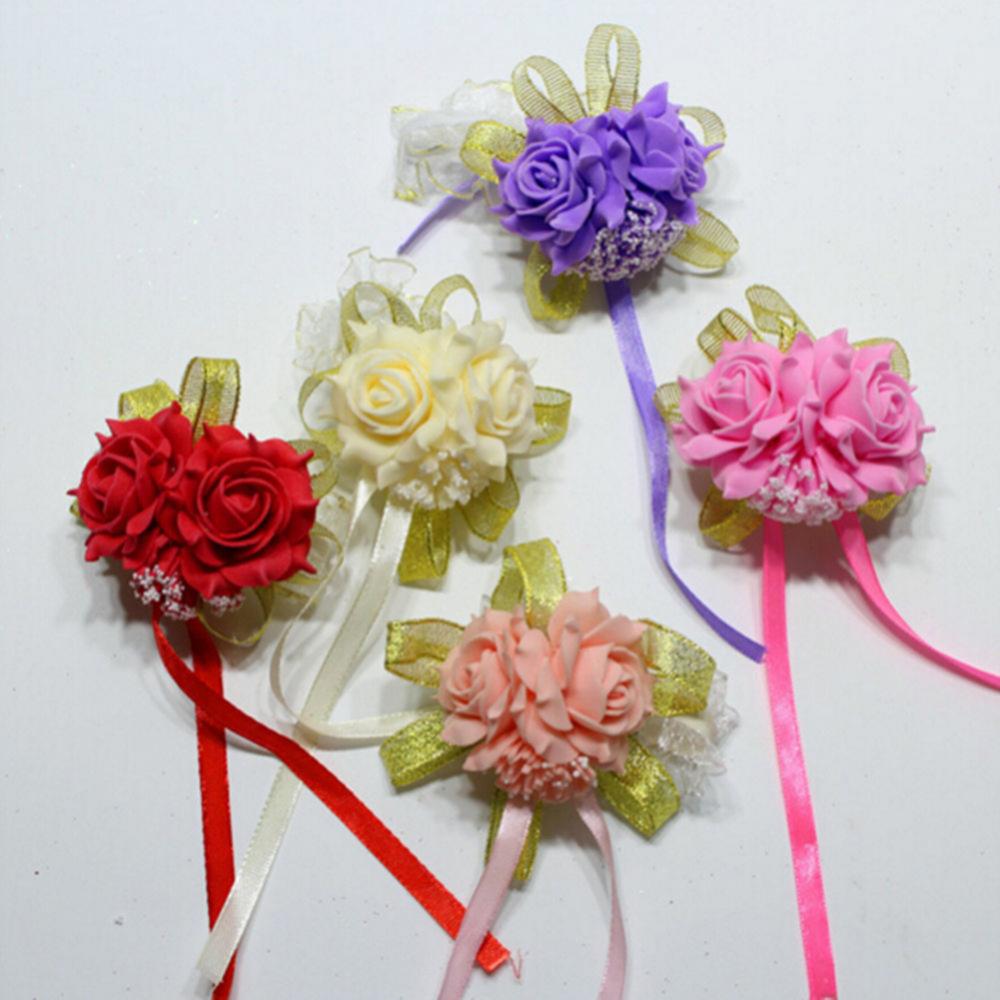 Rose Flowers Bridal Bridesmaid Wrist Corsage Wedding Party Ribbon Bracelet wedding decoration