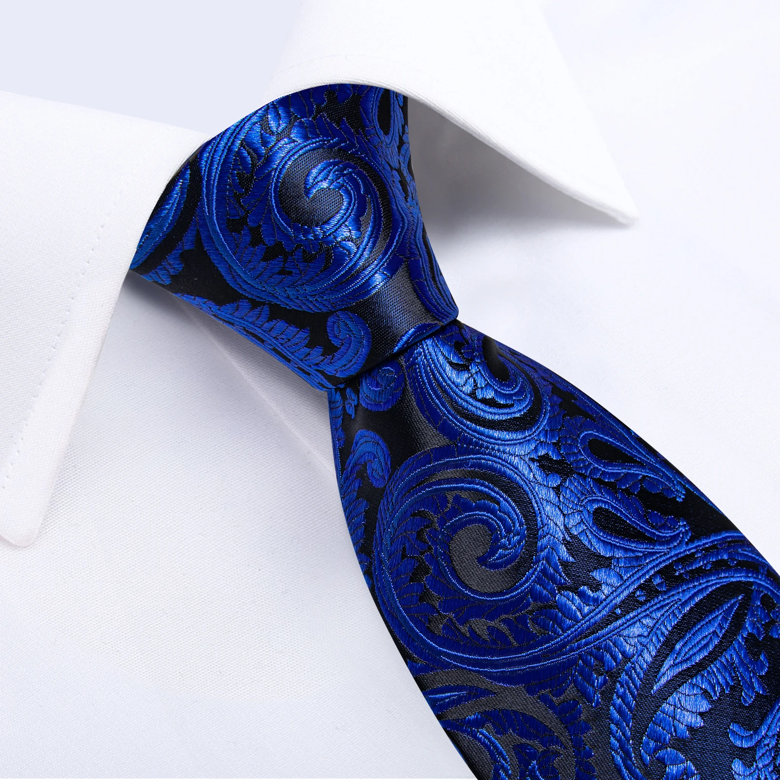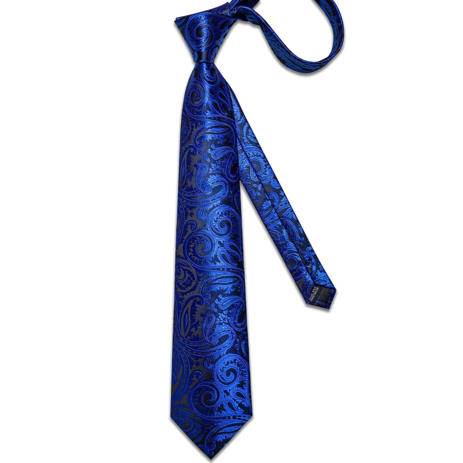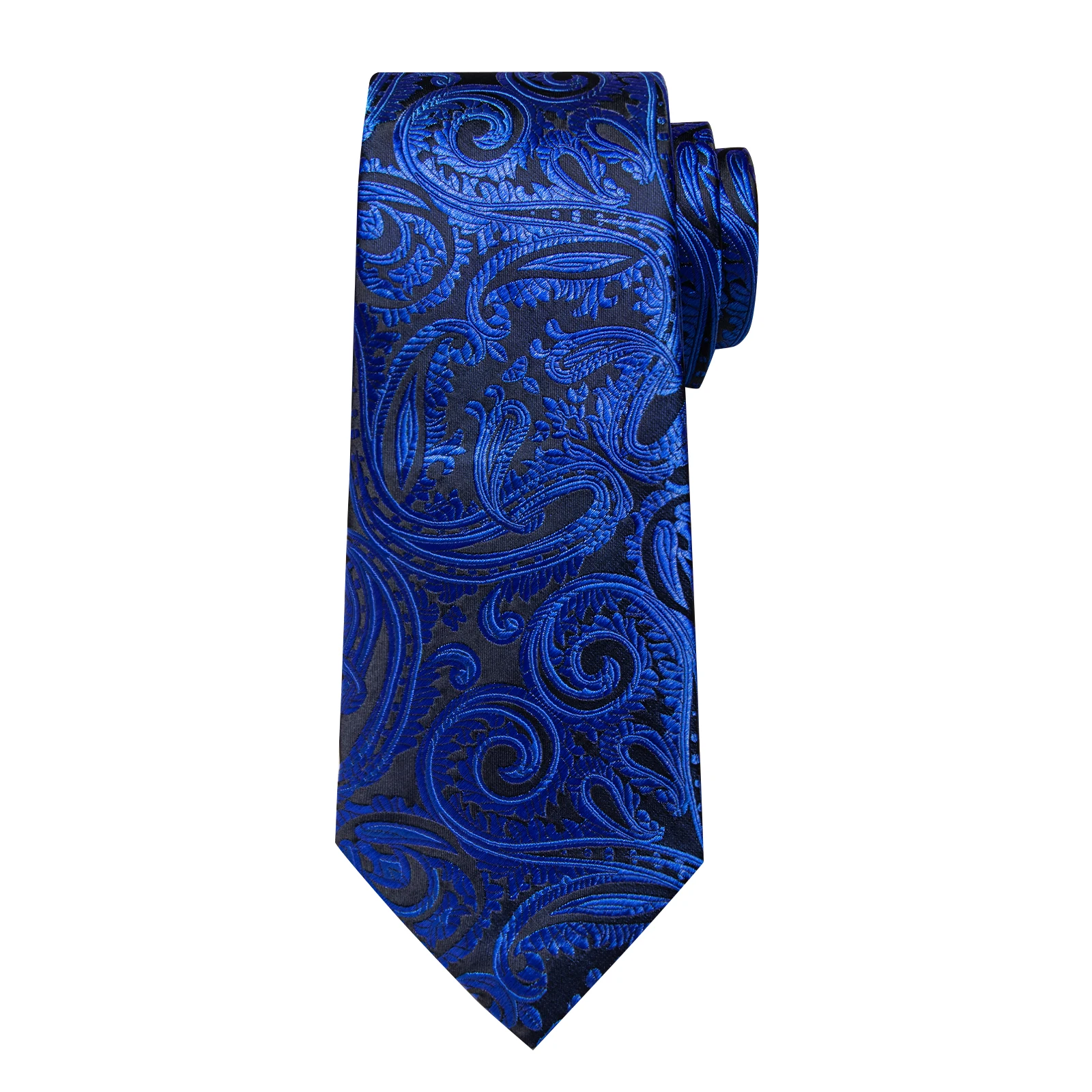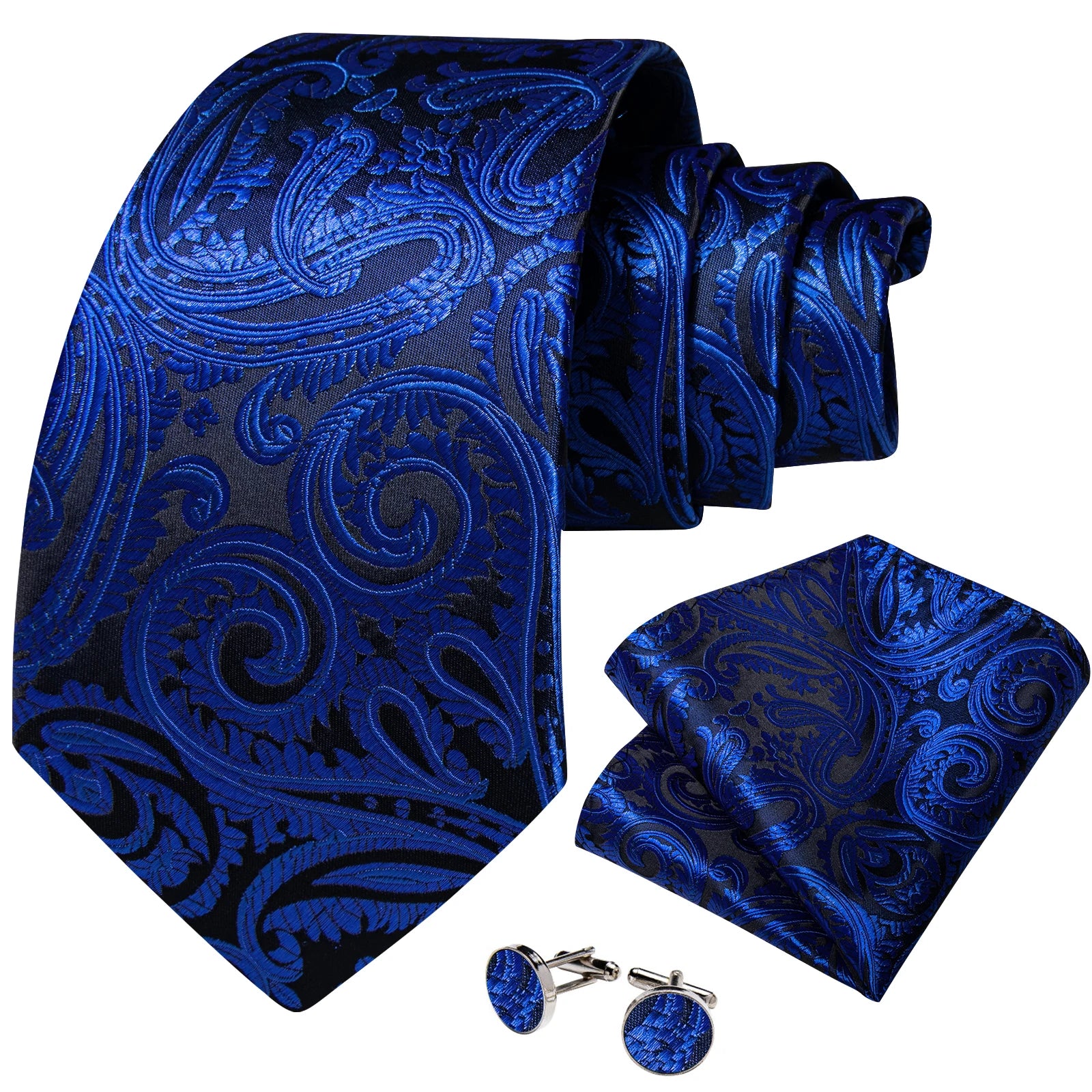 Royal Blue Paisley Plaid Striped Men tie Set with Handkerchief Cufflinks Wedding Prom Groom Accessories Perfect Gift for Men