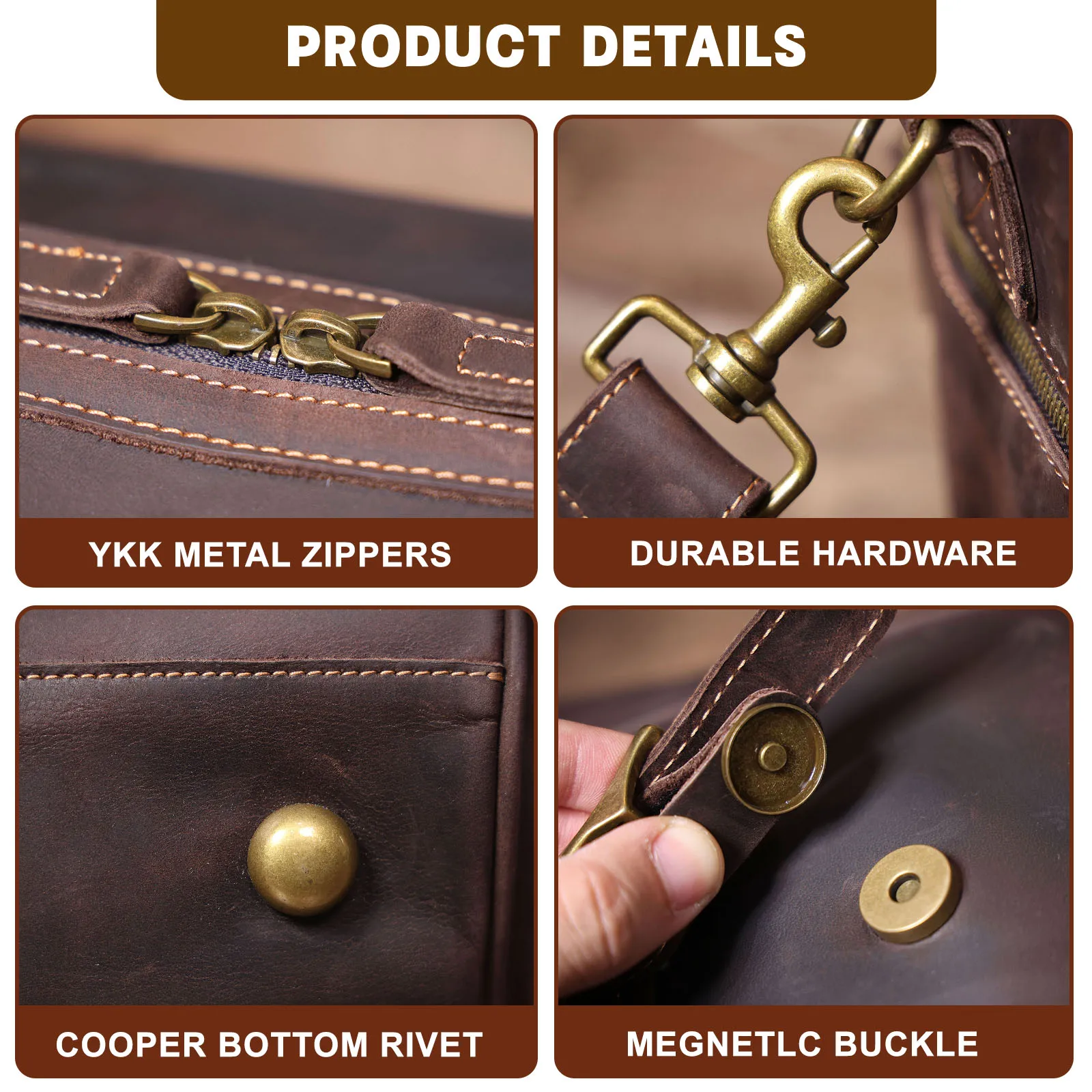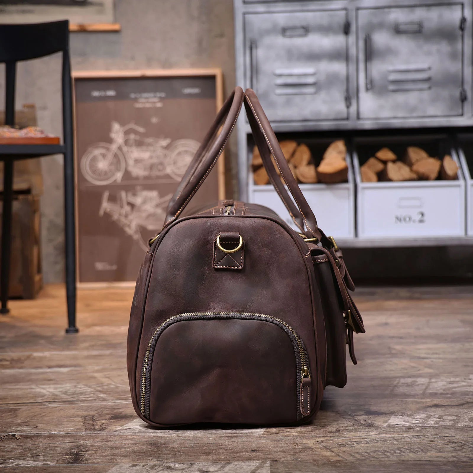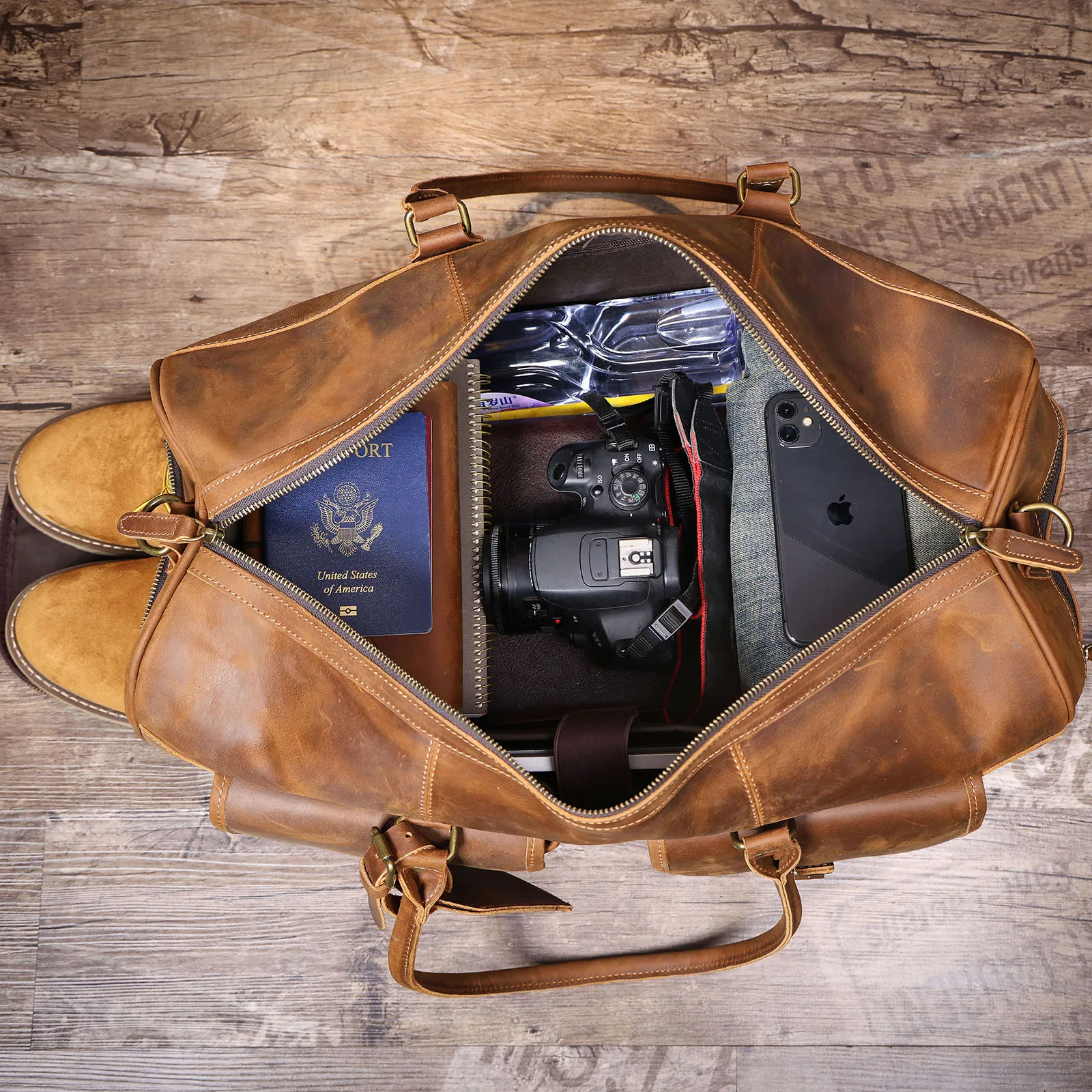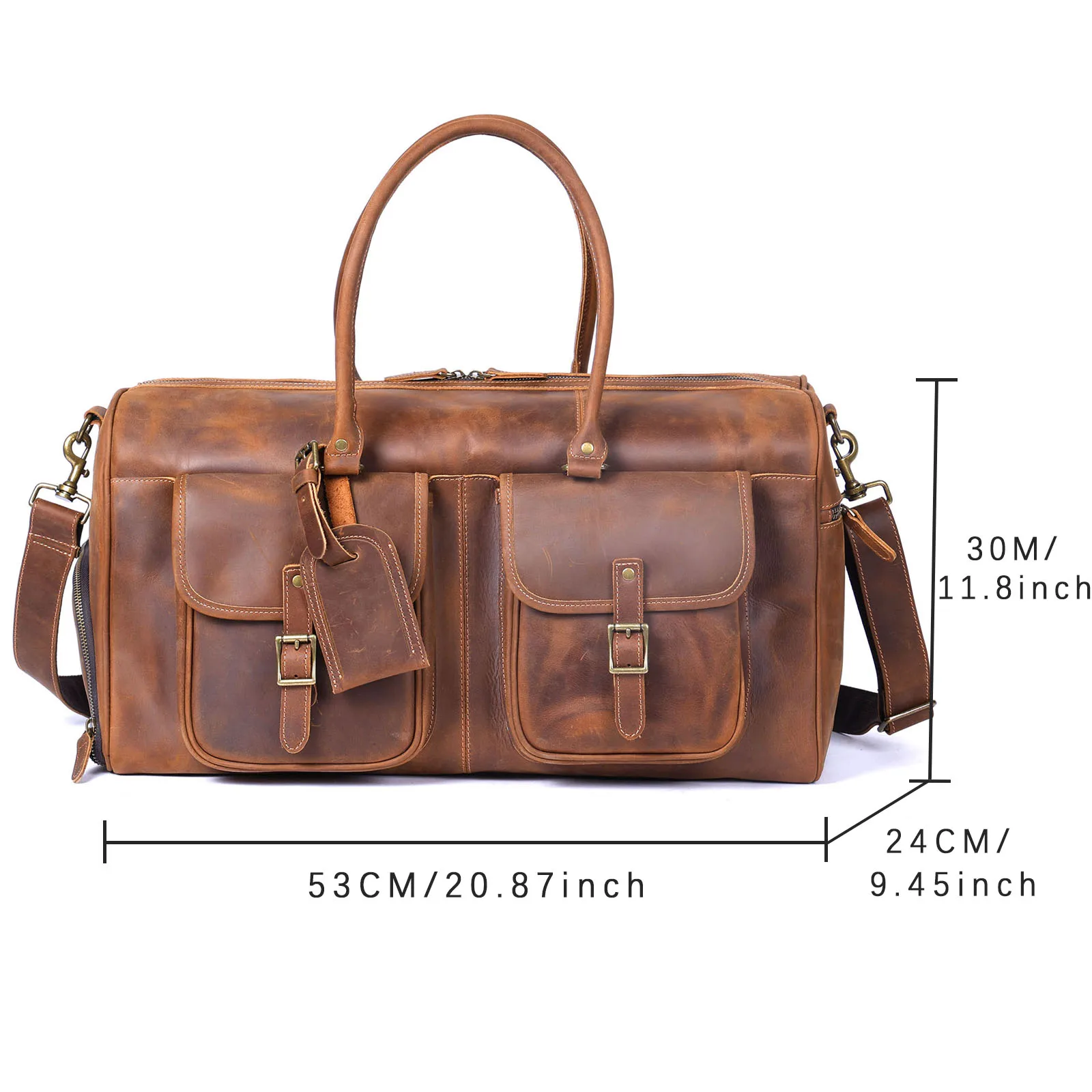 S.WORKER Vintage Genuine Leather Travel Bag Crazy-horse Cowhide Leather Duffel Bag Handicrafted Weekender Bag Gym Bag